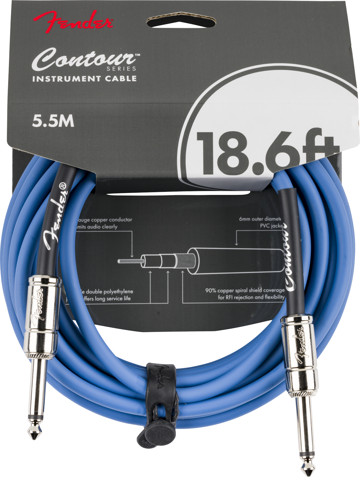 Fender Contour™ Series instrument cables were designed by combining solid construction - featuring spiral shielding and durable nickel-plated connectors - with unmistakable Fender styling to create a high-performance, reliable choice for your cable needs on stage and in the studio.