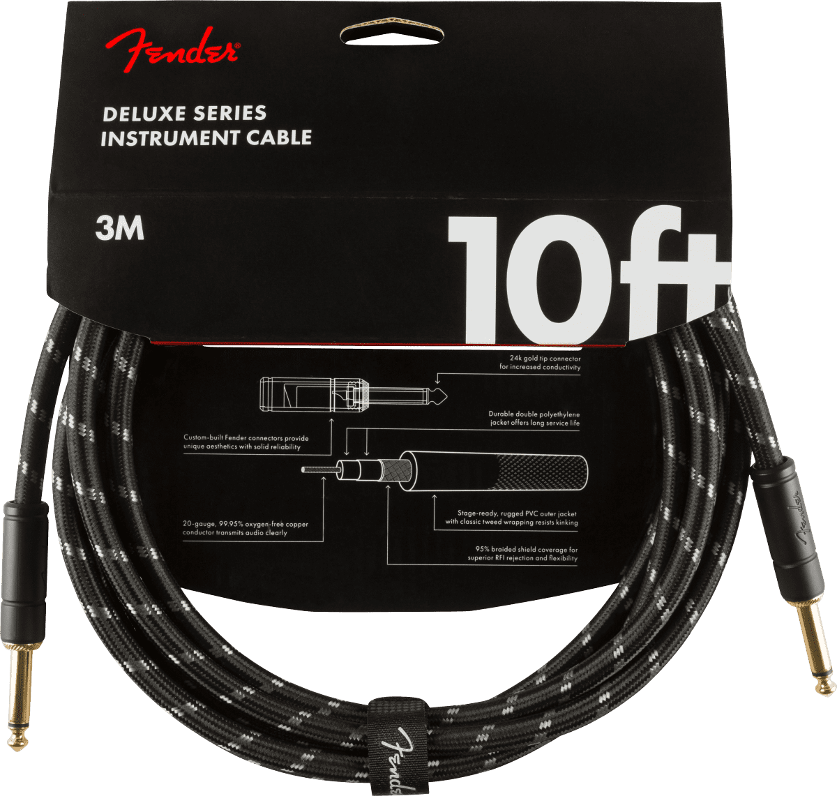 Fender Deluxe Series Instrument Cable, Straight/Straight, 10', Black Tweed