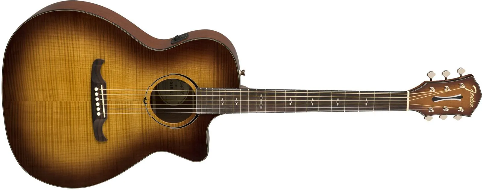 An instrument that sounds as good as it looks, the FA-345CE offers legendary Fender sound and performance in a single-cutaway body. Quality laminate construction, including lacewood back and sides and flame maple top with tortoiseshell binding, along with a modern Fender 3+3 headstock and Viking bridge create an easy-playing instrument that sounds great. The modern Fishman® electronics allowing you to take your sound to the stage with ease. Developing and experienced players alike will appreciate the mahogany neck that gives the guitar a lively tone while complementing the flame maple top.