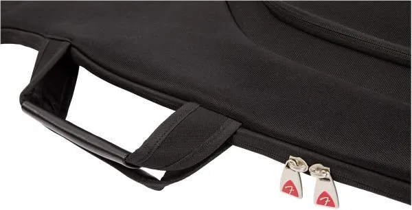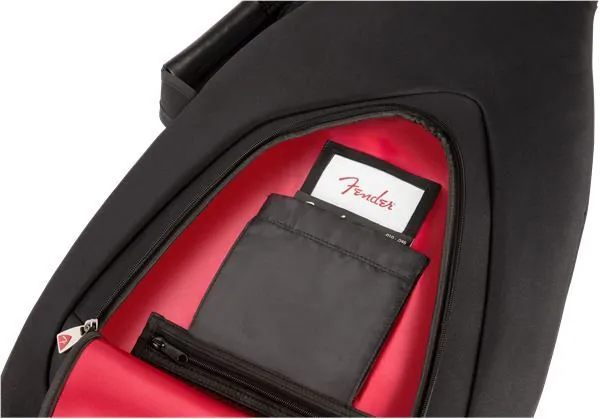 Fender's F610 Series gig bag is a stylish and affordable way to keep your electric bass safe while traveling. Featuring our iconic asymmetrical Fender shape, its durable outer layer is constructed of tough 600 Denier polyester that protects against impacts while avoiding ripping and tearing. Its interior is filled with 10mm padding and lined with soft touch microfiber that keeps your instrument secure while preventing potential finish damage. The F610 gig bag also comes with a comfortable two-piece handle and ergonomic air mesh backpack straps with easily adjustable ladder lock buckles, so you can comfortably carry your instrument without unnecessary physical strain. Plus, the front storage pocket offers additional storage space for small accessories and a business card window.