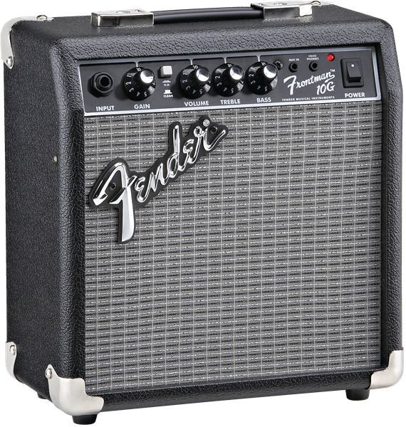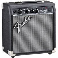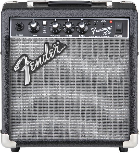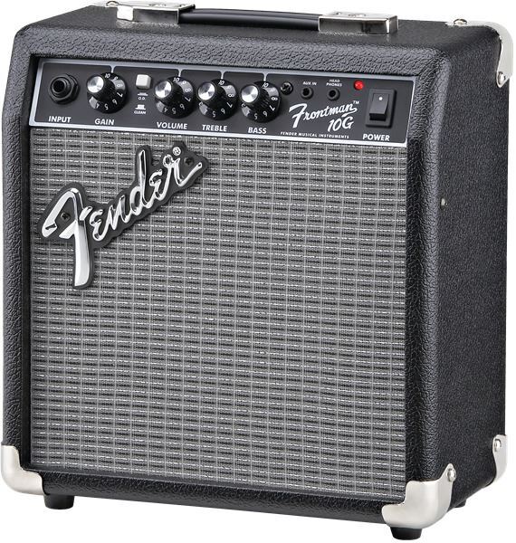 Frontman® amps deliver quality tone at a great price, with custom-voiced built-in overdrive for great tone and the unmistakable Fender® Blackface™ look. The 10-watt Frontman 10G features a 6” Special Design speaker and a adjustable gain control that rocks guitar tones from tube-emulated overdrive to full-strength ultra-saturated distortion - perfect for blues, metal and the famous Fender clean tone. Closed-back design gives a heavier bass response, 1/8” input lets you play along with media players, and 1/8” headphone output is great for silent practice.