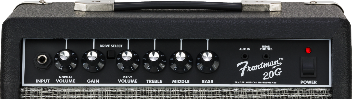 The 20G features a simple intuitive design that anyone, from beginners to pros, will immediately understand. It includes a clean channel with a volume and three EQ knobs for sonic flexibility, plus a separate switchable Drive channel with its own volume. It also comes with 1/8” auxiliary in to play along with your favorite tunes and a headphone jack for silent practice. The Frontman also puts out 20 watts into an 8” Special Design Speaker that delivers great tones when practicing or playing with friends.