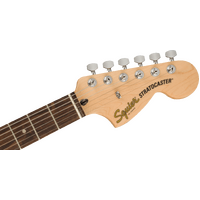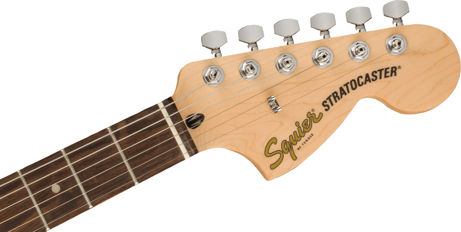A superb gateway into the time-honored Fender® family, the Squier® Affinity Series™ Stratocaster® delivers legendary design and quintessential tone for today’s aspiring guitar hero. This Strat® features several player-friendly refinements such as a thin and lightweight body, a slim and comfortable “C”-shaped neck profile, a 2-point tremolo bridge for superior tremolo action and sealed die-cast tuning machines with split shafts for smooth, accurate tuning and easy restringing. Loaded with a trio of Squier single-coil Strat pickups with 5-way switching for genre-defying sonic variety, this model is ready to accompany any player at any stage.