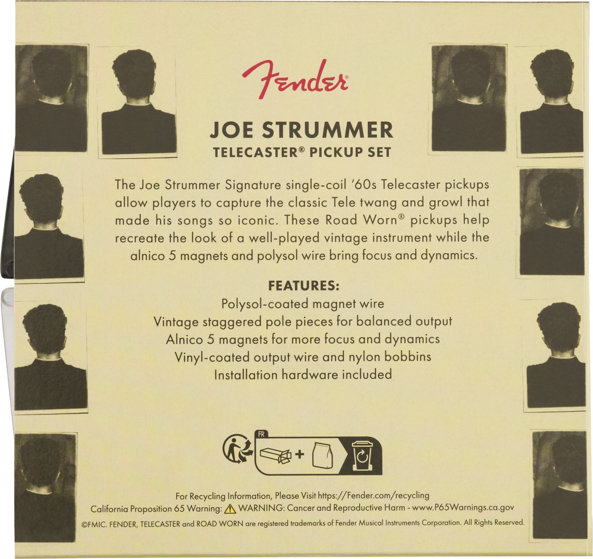 The Joe Strummer Signature single-coil ‘60s Telecaster pickups allow players to capture the classic Tele twang and growl that made his songs so iconic. These Road Worn® pickups help recreate the look of a well-played vintage instrument while the alnico 5 magnets and polysol wire bring focus and dynamics.