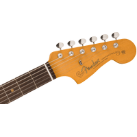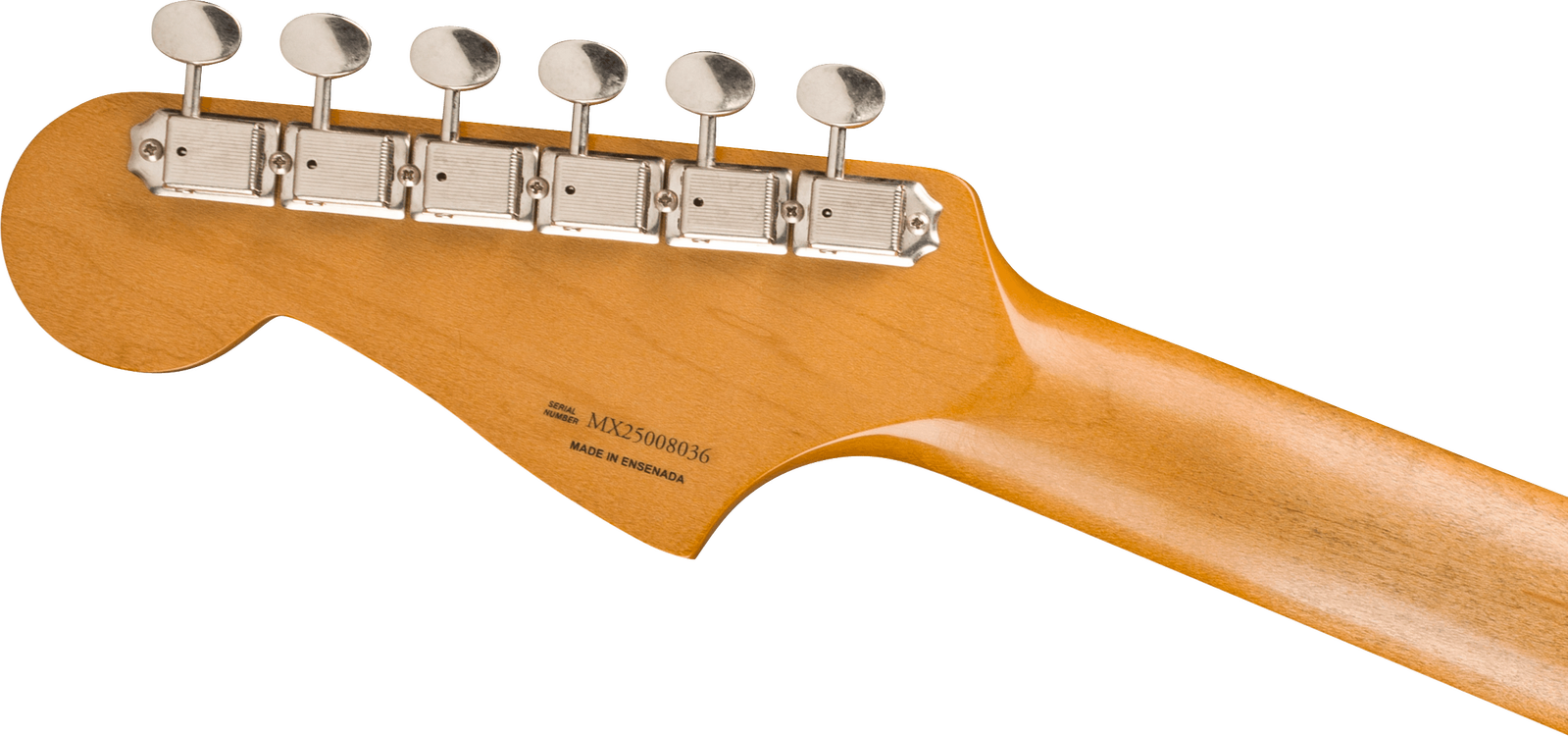 Featuring a variety of vintage colors finished in Road Worn® aged nitrocellulose lacquer, the Vintera® II Road Worn® '50s Jazzmaster® recreates the look and feel of a well-played classic. The ‘50s “C”-shape maple neck with 7.25" radius rosewood fingerboard and vintage-tall frets provides supreme comfort and outstanding feel. Under the hood, you'll find a pair of vintage-style '50s single-coil pickups that deliver all the sweet and sparkling, warm and woody tone that made Fender® famous. Other features include a vintage-style floating tremolo for expressive vibrato and vintage-style tuning machines for enhanced tuning stability.
