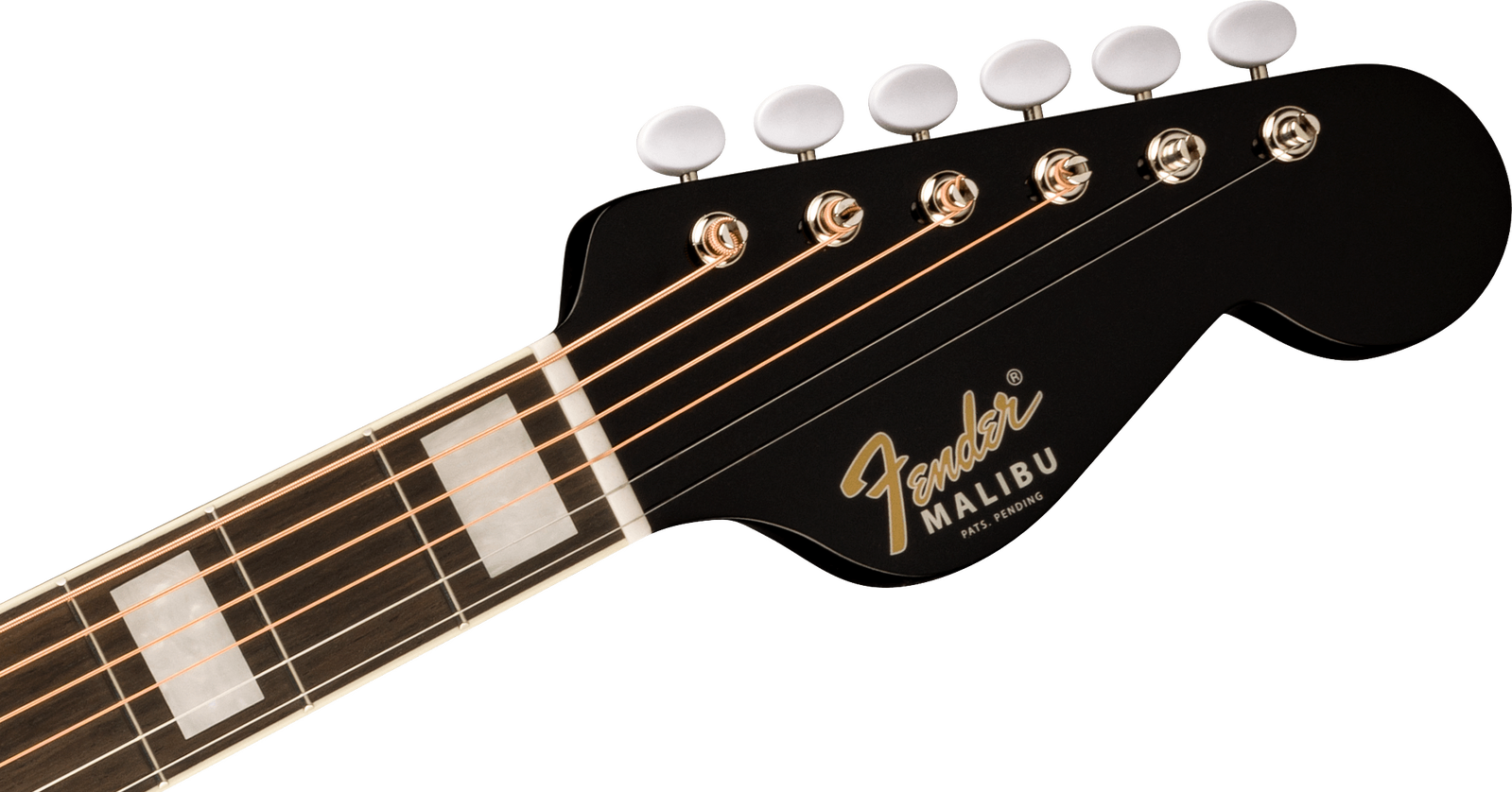 Engineered with an innovative Performance-X™ bracing pattern, the approachable concert-sized body of the Fender California Vintage Malibu is lightly crafted with a solid Sitka spruce top and solid ovangkol back and sides to effortlessly produce a sweet, focused voice with exceptional nuance and balance. An ergonomic modern "V" profile was chosen for the the okoume neck along with a short 25" scale length for warm tonal response, and a tilt-back 6-in-line headstock with a maple headcap for a distinctive look born from Fender's electric guitar DNA. Other notable details include a bound ovangkol fingerboard with pearloid block inlays for a throwback look, vintage-style tuning machines for smooth, accurate tuning, and a bone nut and saddle for superior harmonic character. Designed for the performer, the onboard Fishman® Presys VT Plus preamp system features seamless soundhole-mounted controls that blend an undersaddle piezo and internal body transducer to allow faithful and reliable reproduction of the guitar's natural sound when plugged into an amplifier or recording device. A vintage-style hardshell case is included.