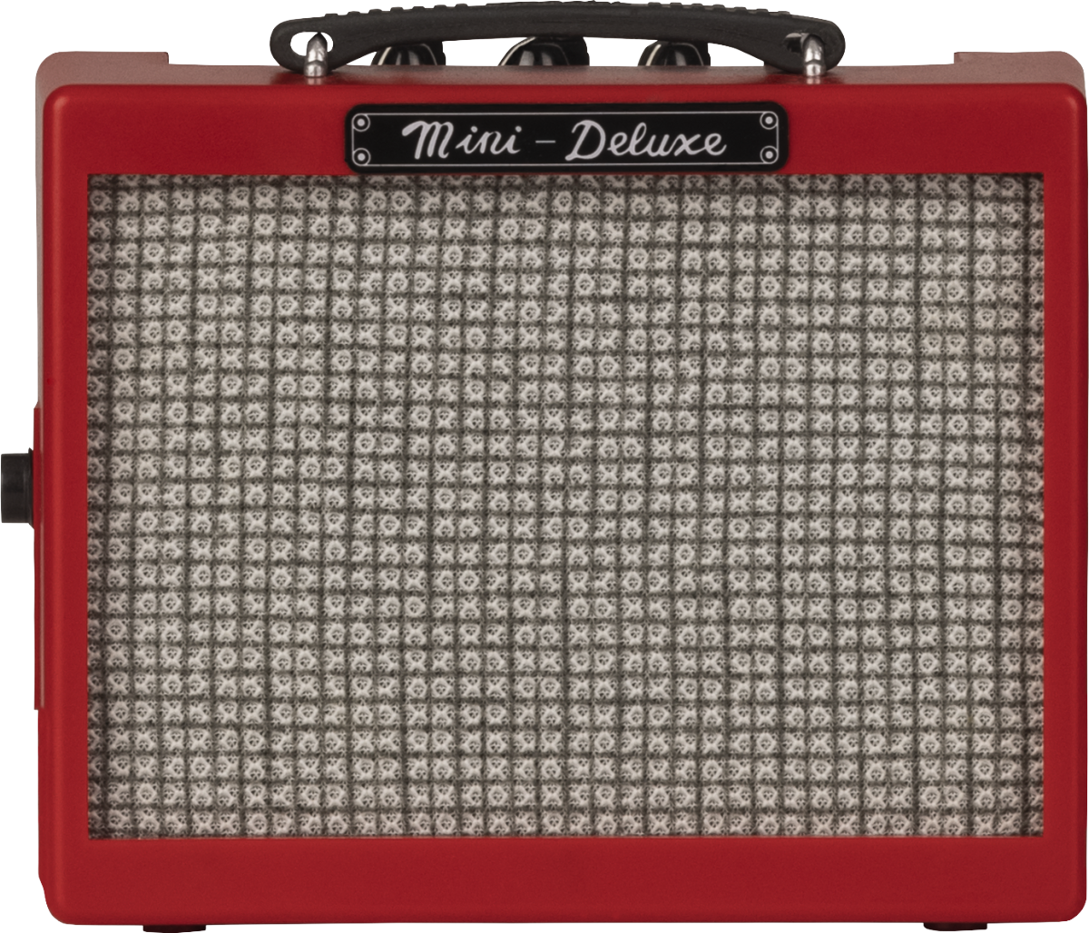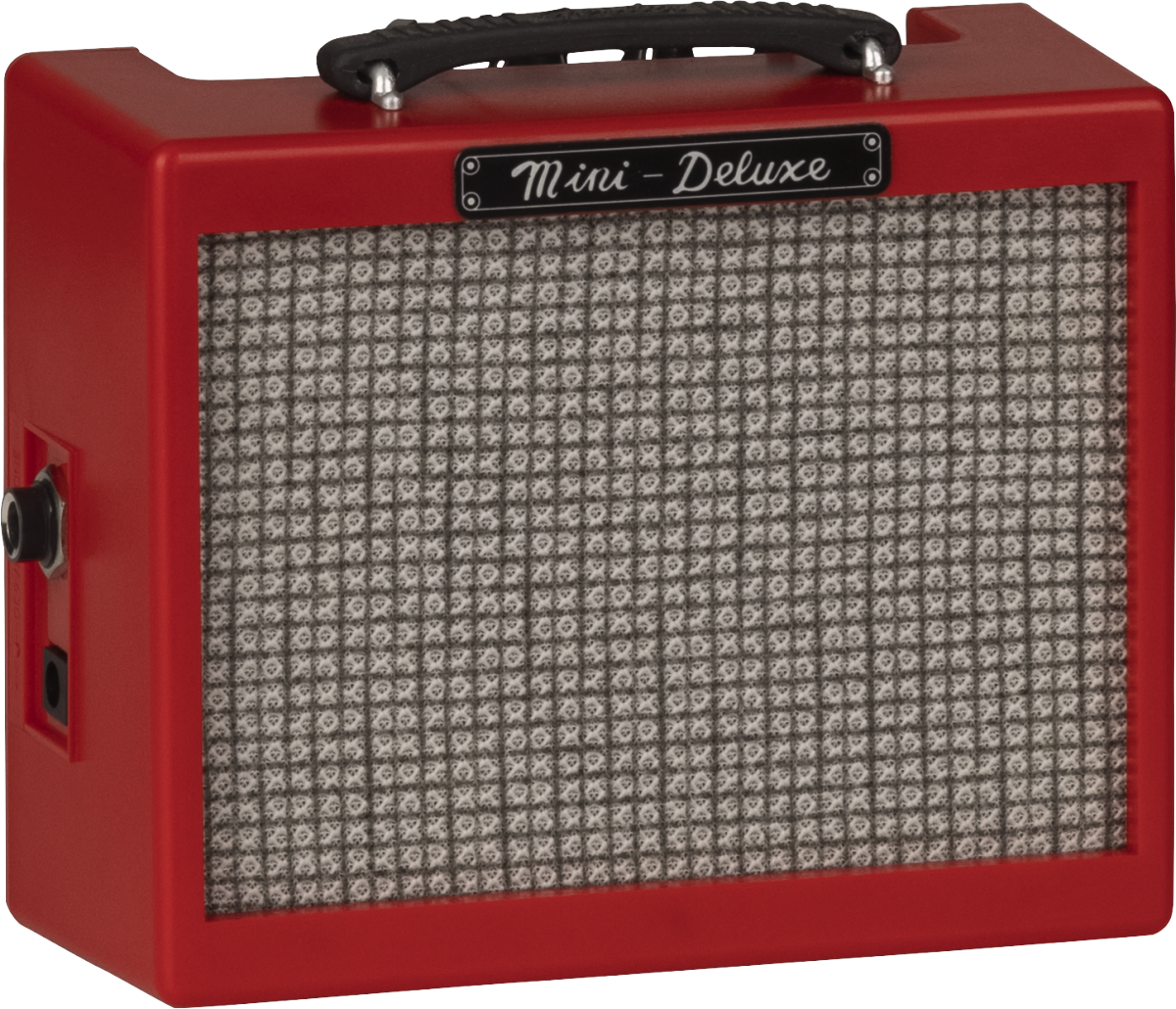 Inspired by our “Texas Red” series of limited run amplifiers, the Fender Mini Deluxe, Red replicates the classic look of the full-size Deluxe amp for the traveling player but with a red cabinet. From the functional "dogbone" handle to the chrome control panel and mini "chicken head" knobs, plug in and tap into Fender style at a fraction of the size, wherever your next destination may be.