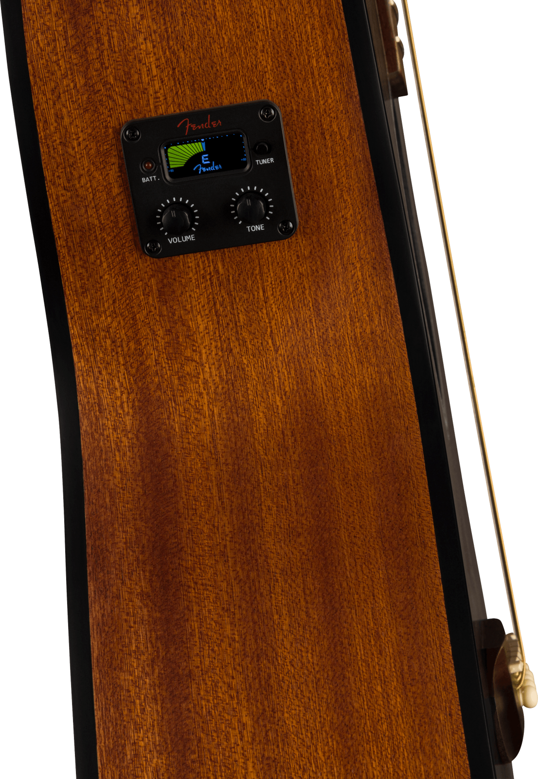 An unmistakable Fender electric guitar design element, the 6-in-line Stratocaster® headstock shape imparts undeniable rock-and-roll attitude into this acoustic-electric instrument.