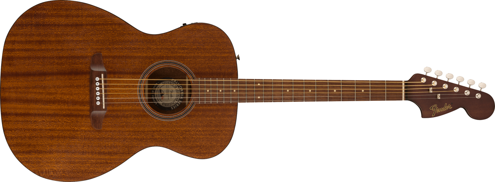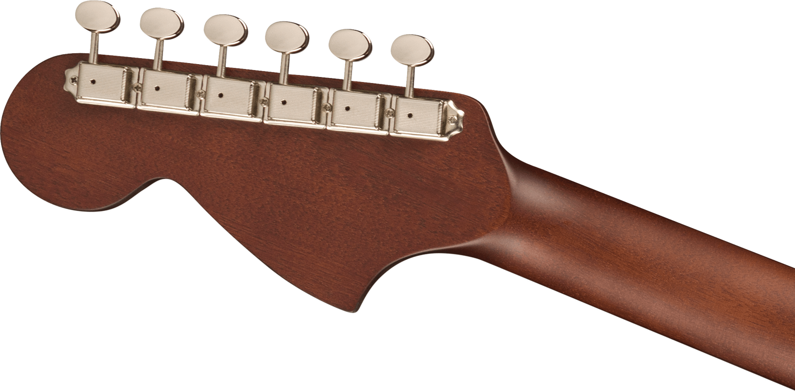 Crafted from all-laminated sapele, the comfortable mid-sized concert body of the Monterey Standard has a deep, rich wood grain and produces a satisfyingly warm and balanced tone well-suited for a variety of playing styles. The easy-to-play nato neck is designed with a slim "C"-shaped profile with rounded fingerboard edges for optimal comfort, a short 24.75" scale length for low string tension, and a 6-in-line headstock for a distinctive look born from Fender's 1970s-era electric guitar DNA. The Monterey Standard also has a narrow string spacing at the bridge, ideal for players with small hands or those seeking reduced picking-hand fatigue. Other notable details include a silky satin urethane finish, vintage-style tuning machines for smooth, accurate tuning, and a GraphTech® NuBone® nut and saddle for detailed harmonic character. Rounding out the feature list is a Fender® preamp system that allows faithful reproduction of the guitar's natural sound when plugged into an amplifier or recording device, and includes a built-in tuner for convenient on-the-fly adjustment.