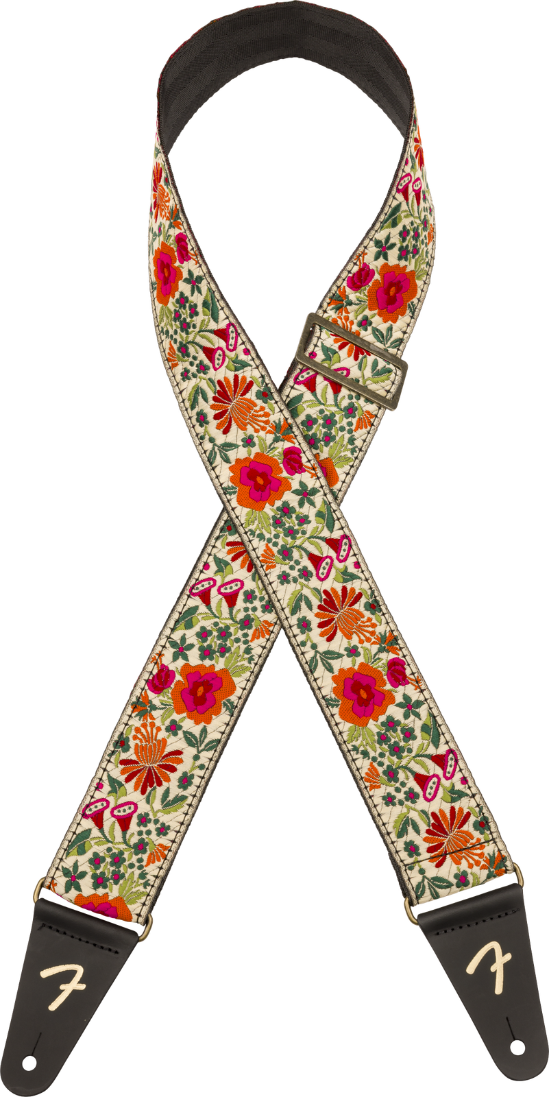Elevate your instrument in style with the Mosaic Jacquard Strap, featuring a stunning multi-color embroidered design and durable seatbelt backing for ultimate comfort. Accented with silver hardware and leather end tabs, this USA-made strap pairs an eye-catching design with long-lasting quality.