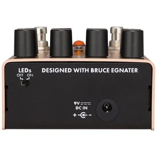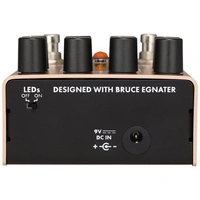 Fender have managed to shrink the MTG’s circuitry, fitting true tube-driven distortion into a chassis that easily fits on any pedalboard. The MTG uses a typical 9V centre-negative power supply, making it easy to integrate into any rig. Internally, a switch-mode power supply converts the incoming 9 volts to 150 volts and applies that higher voltage to the tube’s plate—just like an amplifier. Every Fender effects pedal is crafted from lightweight, durable anodised aluminium and includes LED-illuminated controls.