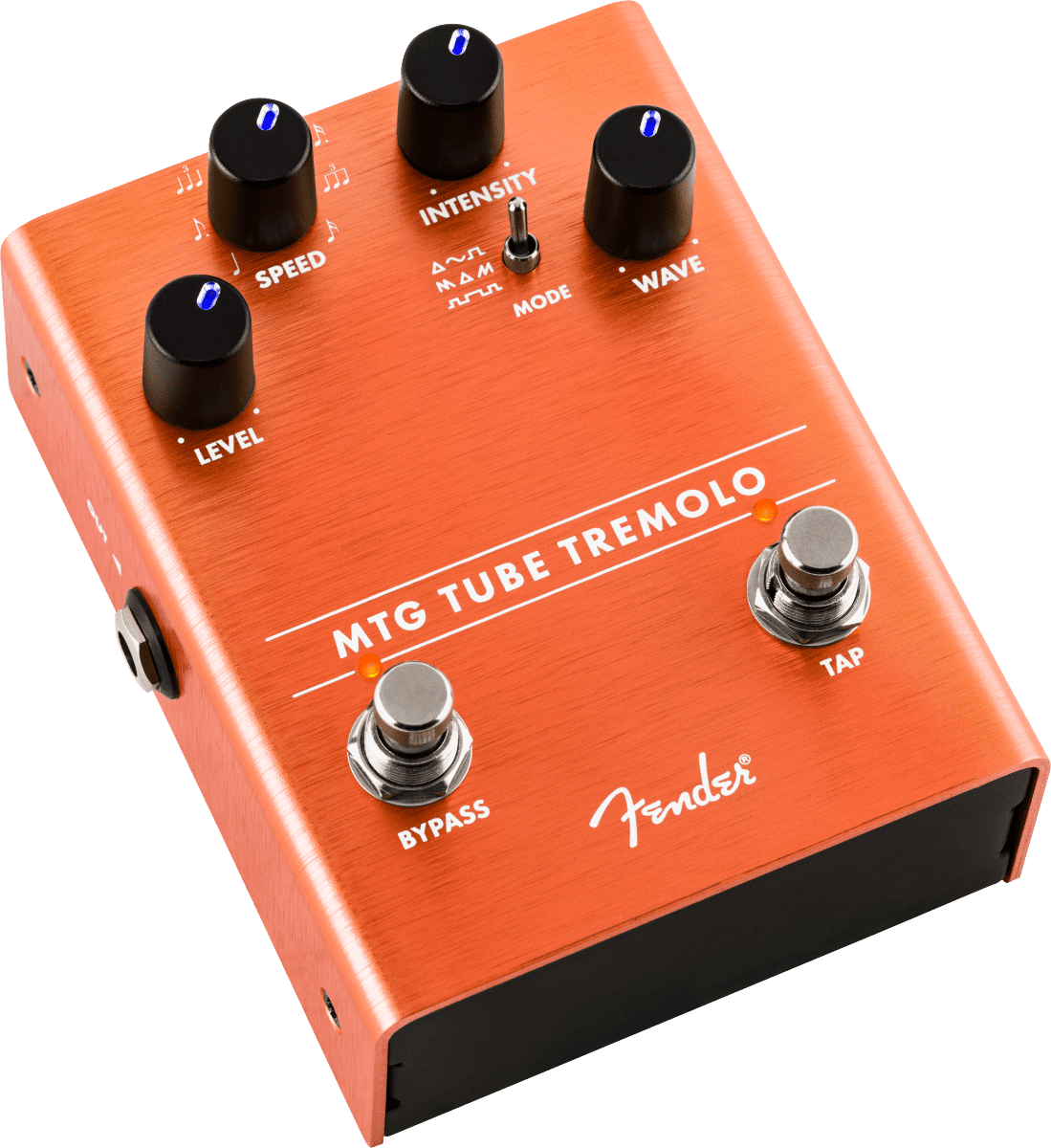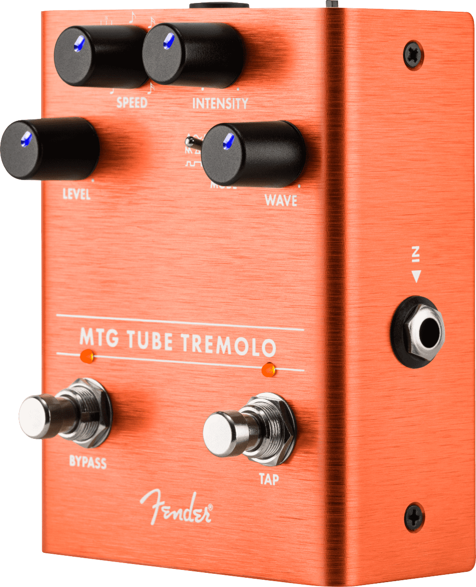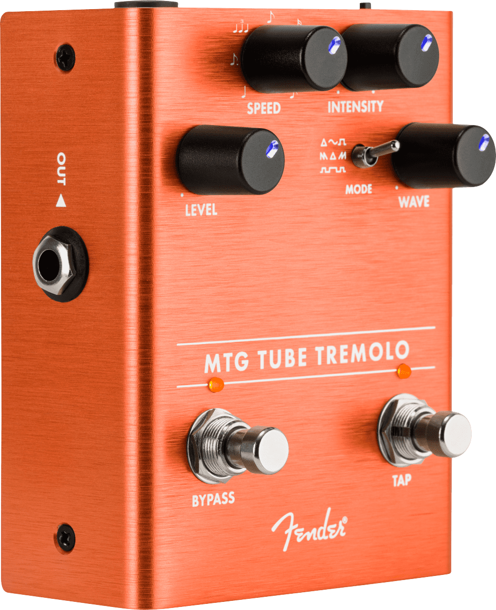 The name Fender is synonymous with real tube tone. The MTG Tube Tremolo brings the hypnotic sound typically found in vintage amps and conveniently places it into a stomp box based around a genuine, U.S. made NOS 6205 preamp tube. The pedal features Level, Intensity, and Speed controls, three oscillator wave shapes, and a dedicated tap tempo foot switch which allows access to various note subdivisions.