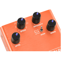 Designed by Fender’s in-house team of experts, the MTG Tube Tremolo is an all-original Fender circuit. The chassis is crafted from lightweight, durable anodized aluminum, and the amp jewel LED gives your pedal board an unmistakably Fender look. The switchable LED back-lit knobs ensure you can adjust your control settings on a dark stage.