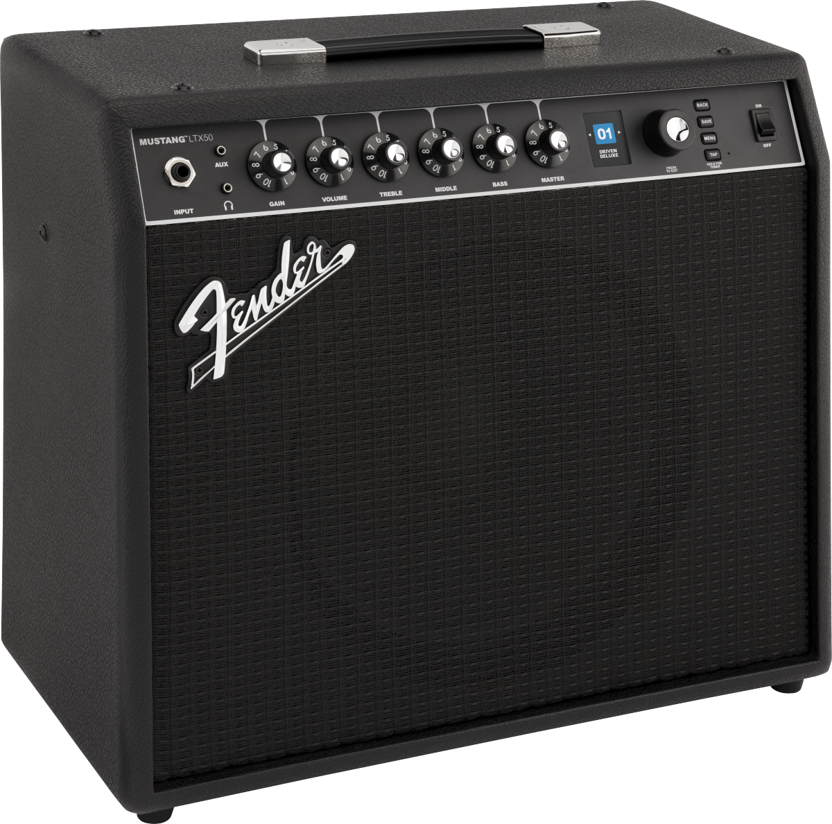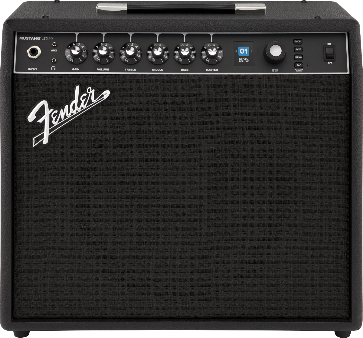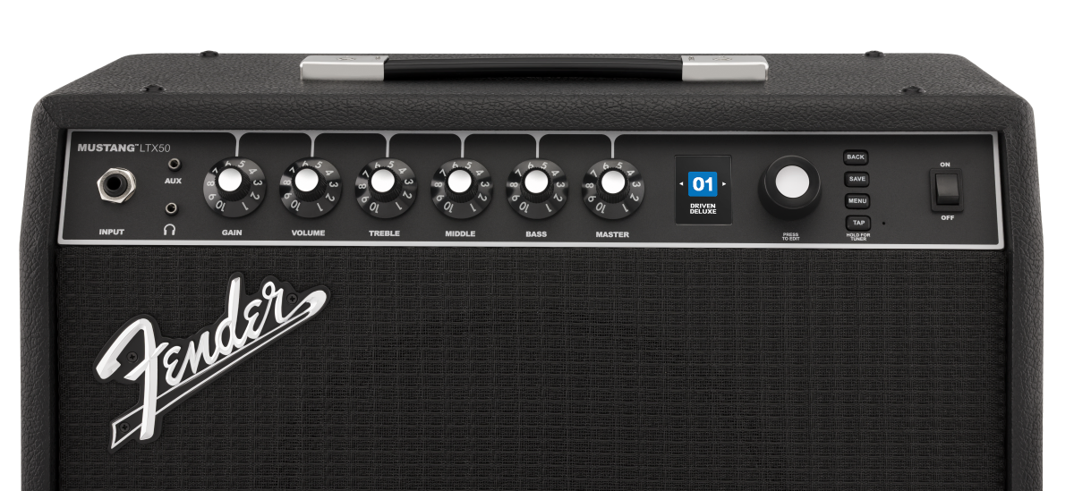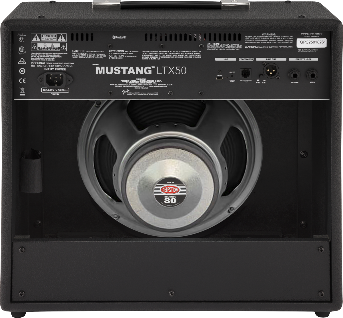 Mustang® LTX 50 is ideal for practice or performance with a 12" Celestion® G12P-80 speaker and an optional gig-ready 5-button footswitch. Onboard Bluetooth® allows you to jam along with your favorite songs as well as create, edit, download and share presets using the Fender TONE® app.
