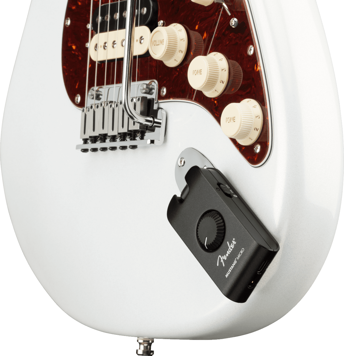 Mustang Micro is a complete personal guitar amplifier featuring a wide selection of tones from the wildly popular Mustang series amps. Plug Mustang Micro directly into your guitar, connect a pair of headphones, and choose your amp and effects. It’s ideal for any player from beginner to pro, making it quick and easy to get great tones when jamming silently at home or on the go. And you can play along to your favourite tracks or instructional videos using the built-in Bluetooth audio connection.