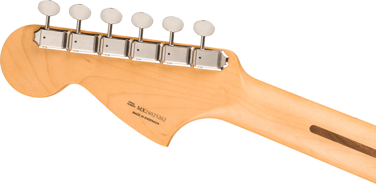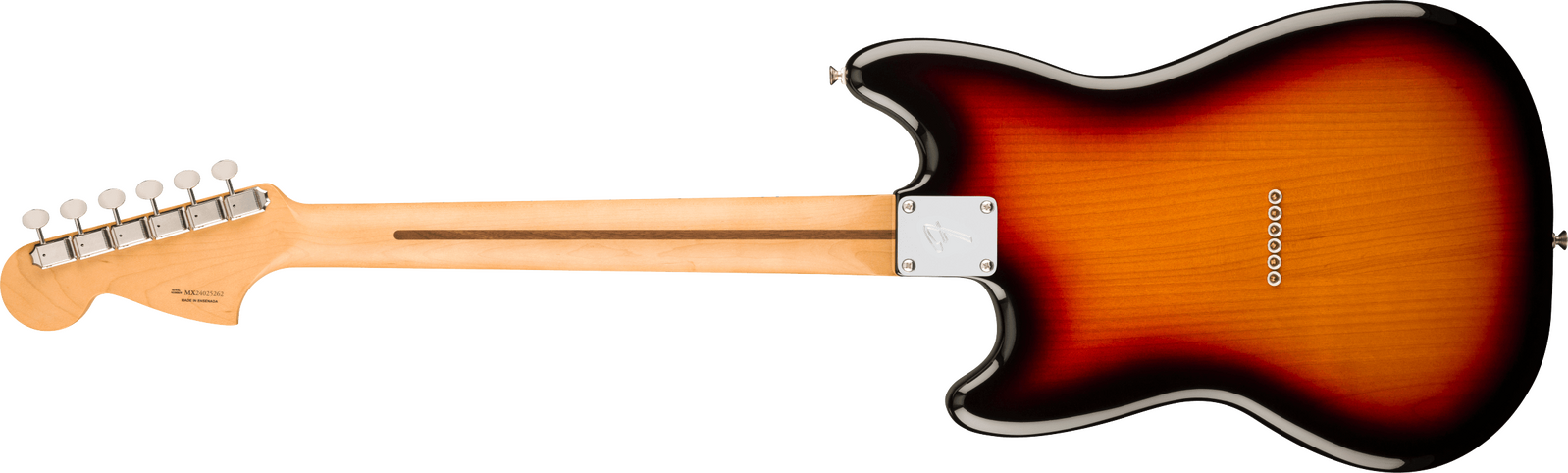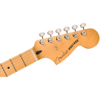 The Player II Mustang radiates timeless Fender charm, but under the hood, it's primed for today's players. Everything about the neck is designed for fast and fluid playability, from the Modern “C”-profile with silky satin urethane finish on the back to the comfy 9.5”-radius slab rosewood or maple fingerboard with smooth rolled edges and 22 medium jumbo frets. A classic alder body is available in both timeless Fender finishes and never-before-seen colors unearthed from the archives. Player Series Alnico V Single-Coil Mustang® pickups offer crystalline highs, musical mids and tight lows that elevate any genre. The 3-way toggle switch lets you easily dial in everything from glassy neck pickup chime to cutting bridge pickup snarl and all points in between, while a 6-saddle hardtail bridge, bent steel saddles and ClassicGear™ tuners ensure precise tuning stability for the flexibility to explore endless sonic possibilities.