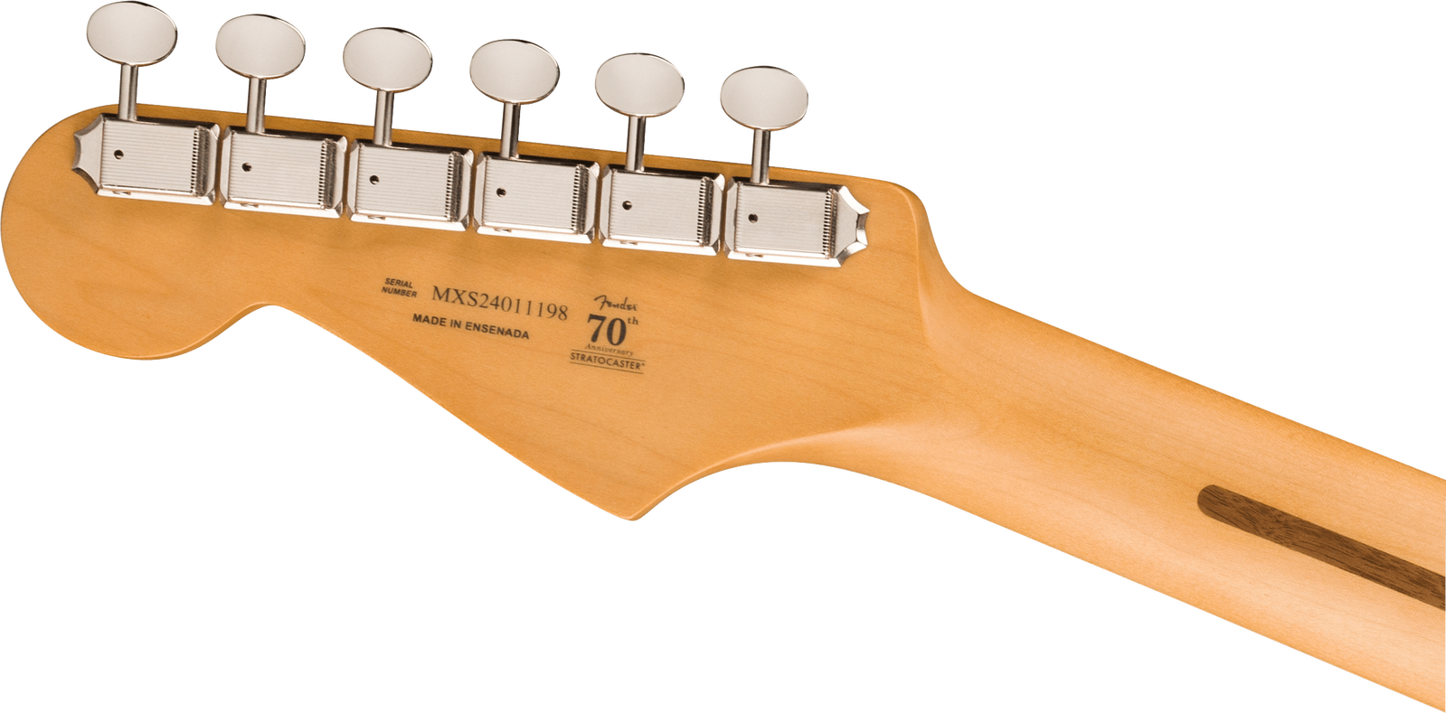 The Player II Stratocaster radiates timeless Fender charm, but under the hood, it's primed for today's players. Everything about the neck is designed for fast and fluid playability, from the Modern “C”-profile with silky satin urethane finish on the back to the comfy 9.5”-radius slab rosewood or maple fingerboard with smooth rolled edges and 22 medium jumbo frets. Choose from alder, chambered ash or chambered mahogany bodies available in both classic Fender finishes and never-before-seen colors unearthed from the archives. Player Series Alnico V Single-Coil Strat® pickups offer crystalline highs, musical mids and tight lows that elevate any genre. The 5-way blade switch lets you dial in everything from glassy neck pickup cleans to rowdy bridge pickup snarl and all points in between, while a 2-point tremolo and ClassicGear™ tuners ensure precise tuning stability for the flexibility to explore endless sonic possibilities.