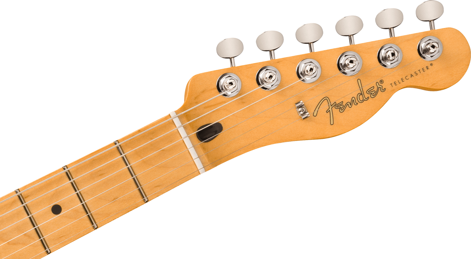 The Player II Telecaster radiates timeless Fender charm, but under the hood, it's primed for today's players. Everything about the neck is designed for fast and fluid playability, from the Modern “C”-profile with silky satin urethane finish on the back to the comfy 9.5”-radius slab rosewood or maple fingerboard with smooth rolled edges and 22 medium jumbo frets. Choose from alder, chambered ash or chambered mahogany bodies available in both classic Fender finishes and never-before-seen colors unearthed from the archives. Player Series Alnico V Single-Coil Tele® pickups offer crystalline highs, musical mids and tight lows that elevate any genre. The 3-way blade switch lets you dial in everything from smooth neck pickup chime to cutting bridge pickup twang and all points in between, while a 6-saddle bridge, block steel saddles and ClassicGear™ tuners ensure precise tuning stability for the flexibility to explore endless sonic possibilities.