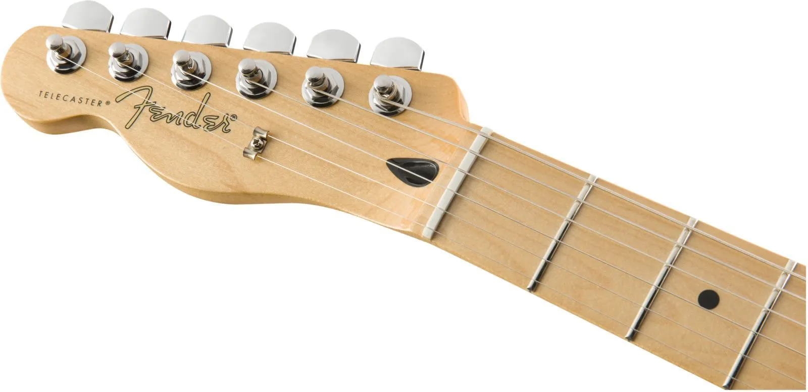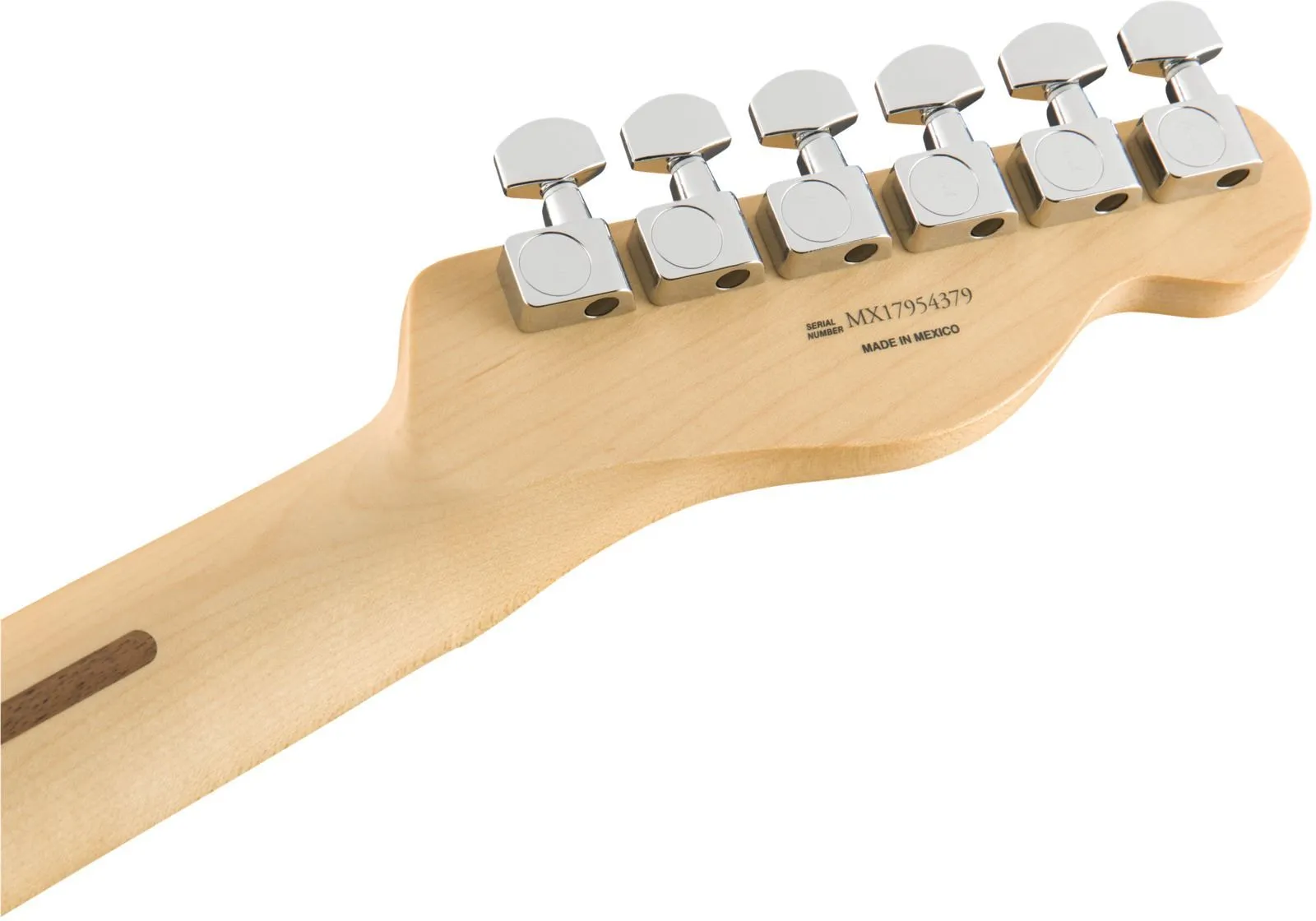 Respecting our heritage while maintaining our innovative spirit, the pair of Player Series single-coil Telecaster pickups are crisp and articulate—it’s authentic Fender tone with a modern edge. The “Modern C”-shaped maple neck’s comfortable contours and smooth finish are ideal for almost any playing style. By adding a 22nd medium jumbo fret to the contemporary 9.5”-radius fingerboard we’ve made it easier to express yourself musically. To enhance the traditional twang and bite of a Telecaster, we added bent-steel saddles to the string-through-body bridge for precise intonation and to help your sound cut through the mix, sustaining until the sun burns out. Other features include master volume and tone controls, a 3-way pickup switch with barrel tip, 3-ply pickguard, synthetic bone nut, dual-wing string tree, sealed tuning machines and four-bolt “F”-stamped neck plate that marks this instrument as the real deal—as Fender as it gets.