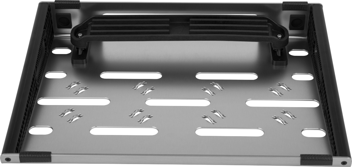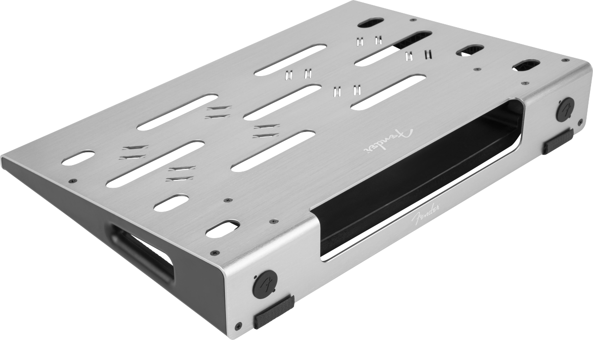 Surprisingly simple and remarkably versatile – the Fender® Professional Pedal Board delivers world-class performance and utility. The low-profile precision-machined anodized-aluminum chassis is lightweight and strong enough to stand up to the rigors of the road, while the thoughtfully designed cable routing and management system allows you to keep things neat and tidy, even if your board is overflowing with pedals. Under the hood, a universal mounting bracket fits most popular pedal power-supplies – and is a perfect match for the Fender Engine Room series. The included soft case with storage pocket and cable ties will keep your pedals and accessories safe on the way to the gig, studio or any other destination.