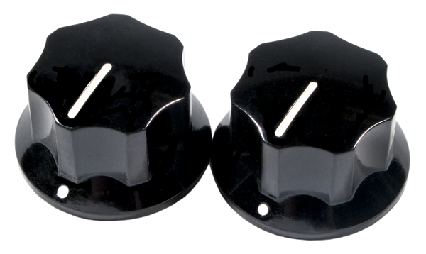 • Set of two black skirted knobs for tone and volume