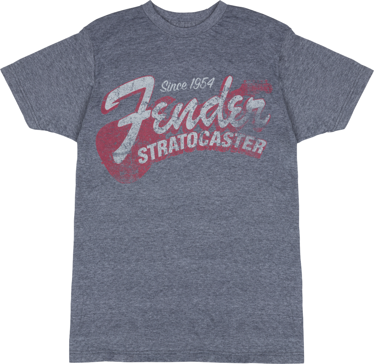 The Fender Stratocaster has moved the musical landscape for more than 60 years. Commemorate your allegiance to the world's most recognizable guitar with a T-shirt that speaks to that rich legacy. This dark blue tee keeps the Stratocaster's old-school vibe alive with a distressed look and a classic faded "Fender Stratocaster" insignia on the front.