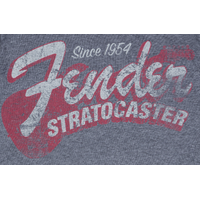 The Fender Stratocaster has moved the musical landscape for more than 60 years. Commemorate your allegiance to the world's most recognizable guitar with a T-shirt that speaks to that rich legacy. This dark blue tee keeps the Stratocaster's old-school vibe alive with a distressed look and a classic faded "Fender Stratocaster" insignia on the front.