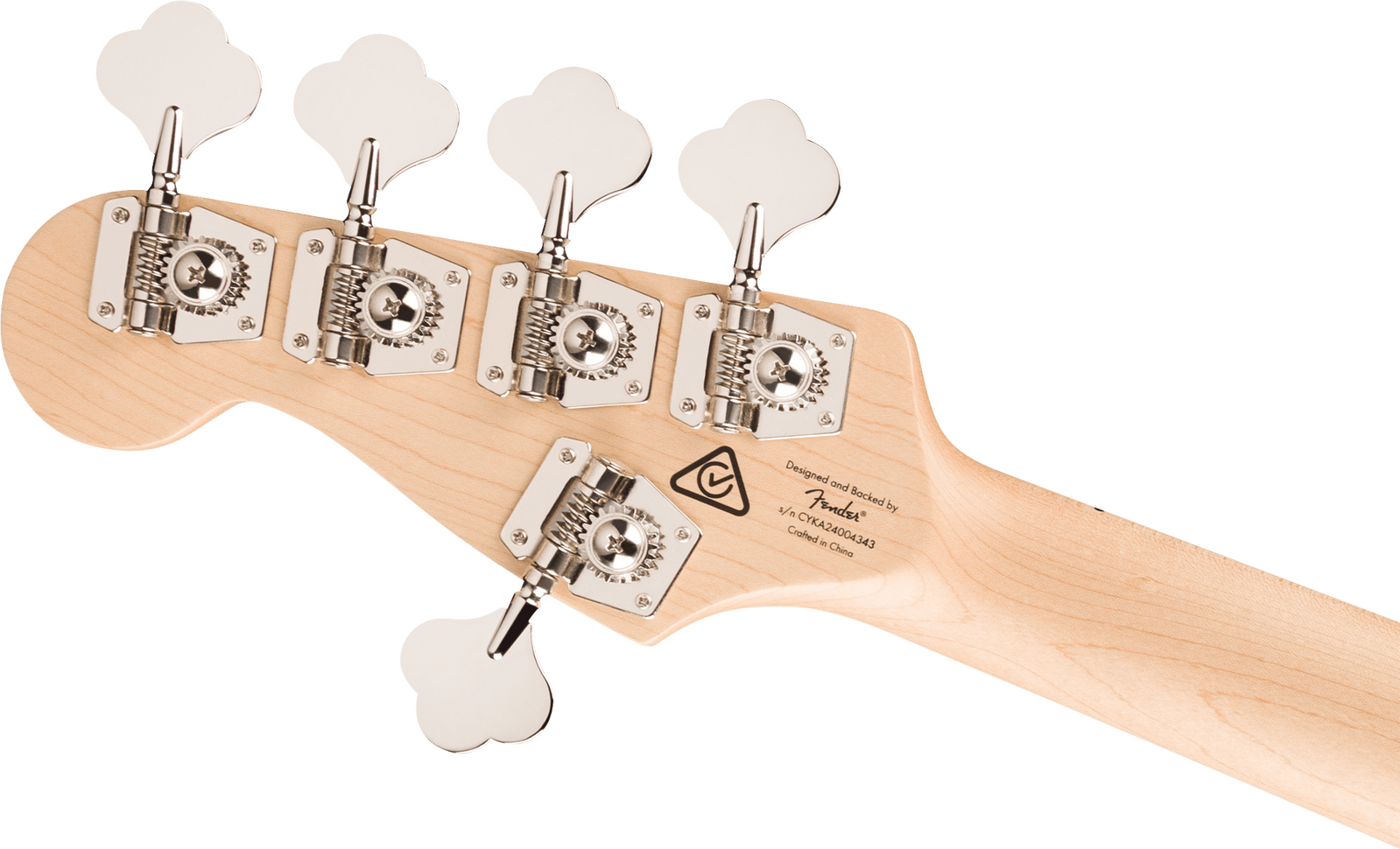 A superb gateway into the time-honored Fender® family, the Squier® Affinity Series® Active Jazz Bass® V delivers legendary design and quintessential tone for today’s aspiring bassist. This 5-string J Bass® features several player-friendly refinements such as a thin and lightweight body, a slim and comfortable “C”-shaped neck with retro block inlays and vintage-style open-gear tuning machines for smooth, accurate tuning. Loaded with two Squier Noiseless™ J Bass pickups shaped by an active 9V 2-band preamp for a wide variety of punchy tones, this model is ready to help lay the foundation for any player at any stage.