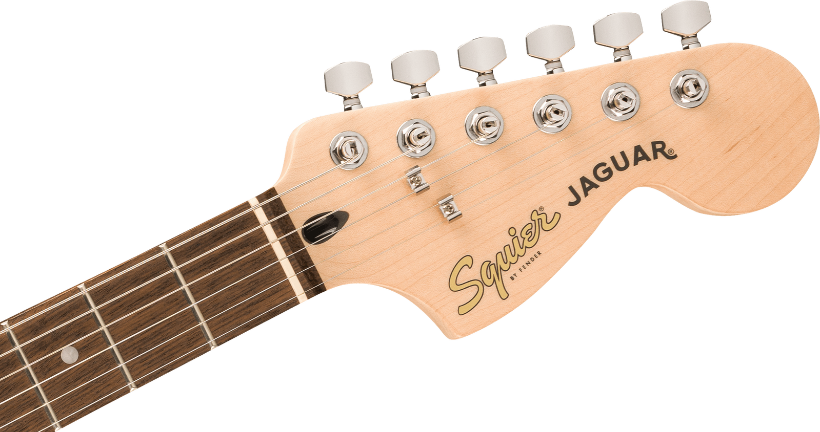 A superb gateway into the time-honored Fender® family, the Squier® Affinity Series™ Jaguar® delivers legendary design and quintessential tone for today’s aspiring guitar hero. This model features several player-friendly refinements such as a thin and lightweight body, a slim and comfortable “C”-shaped neck with short 24“ scale length, a vintage-style tremolo and floating bridge for superior tremolo action and sealed die-cast tuning machines with split shafts for smooth, accurate tuning and easy restringing. Loaded with two Squier single-coil pickups with 3-way switching for genre-defying sonic variety, this model is ready to accompany any player at any stage.