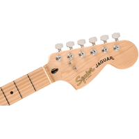 A superb gateway into the time-honored Fender® family, the Squier® Affinity Series™ Jaguar® delivers legendary design and quintessential tone for today’s aspiring guitar hero. This model features several player-friendly refinements such as a thin and lightweight body, a slim and comfortable “C”-shaped neck with short 24“ scale length, a vintage-style tremolo and floating bridge for superior tremolo action and sealed die-cast tuning machines with split shafts for smooth, accurate tuning and easy restringing. Loaded with two Squier single-coil pickups with 3-way switching for genre-defying sonic variety, this model is ready to accompany any player at any stage.