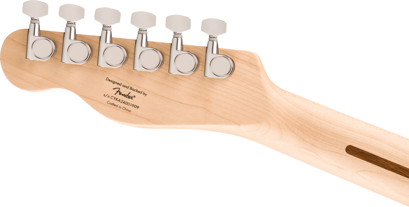 A superb gateway into the time-honored Fender® family, the Squier® Affinity Series® Telecaster® FMT SH delivers legendary design and quintessential tone for today’s aspiring guitar hero. This Tele® features several player-friendly refinements such as a thin and lightweight body with an eye-catching flame maple top (FMT), a slim and comfortable “C”-shaped neck profile, a string-through-body bridge for optimal body resonance and sealed die-cast tuning machines with split shafts for smooth, accurate tuning and easy restringing. Loaded with a Squier single-coil bridge pickup and humbucking neck pickup for genre-defying sonic variety, this model is ready to accompany any player at any stage.