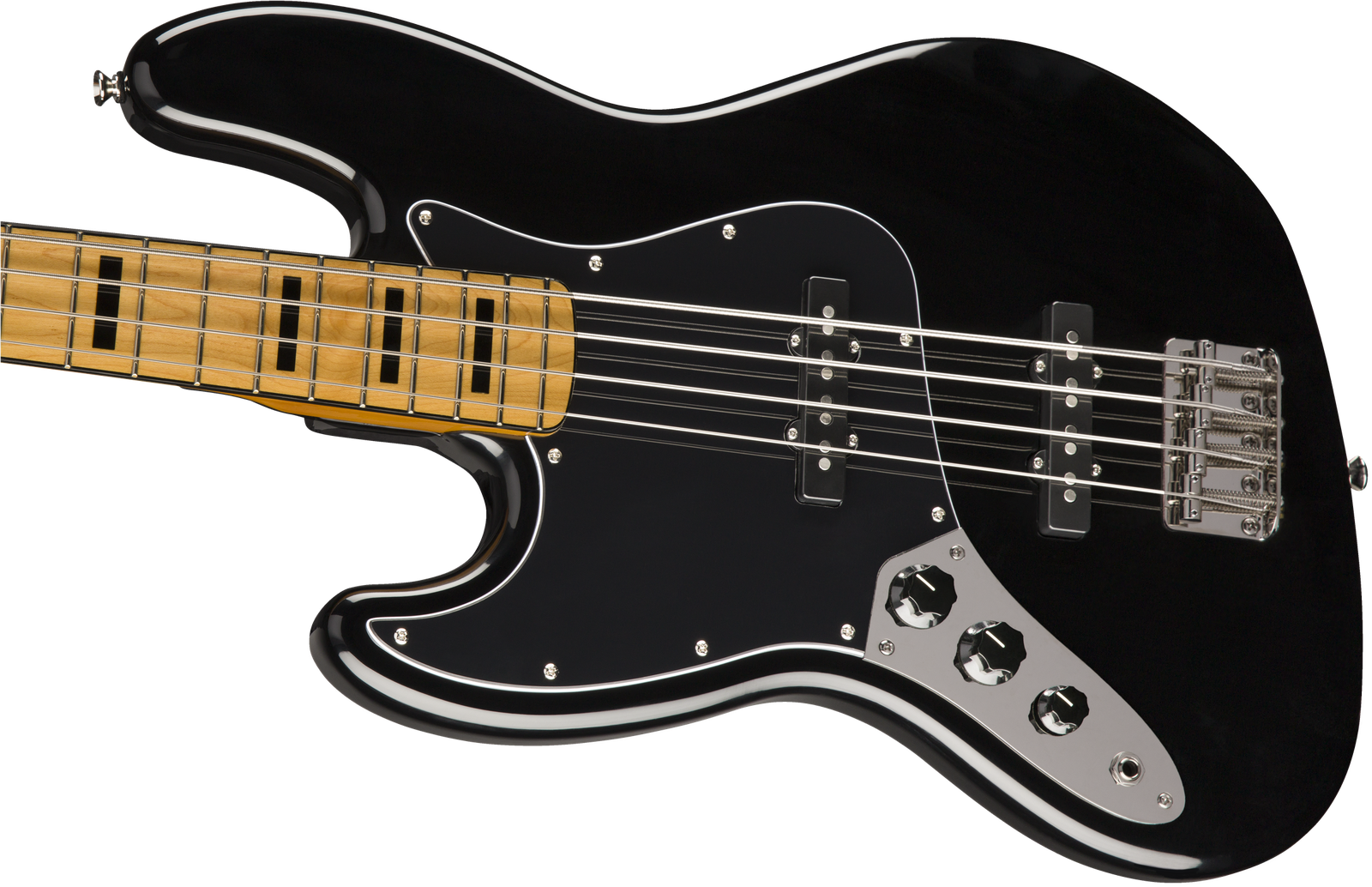 The Classic Vibe '70s Jazz Bass® is a nod to the 1970s evolution of the J Bass®, combining the luxurious playability that made it famous with the versatility and massive tone of its dual Fender-Designed alnico single-coil pickups. Player-friendly features include a slim, comfortable "C"-shaped neck profile with an easy-playing 9.5"-radius fingerboard and narrow-tall frets, as well as a vintage-style bridge with slotted barrel saddles for solid string stability. This throwback Squier model also features 1970s-inspired headstock markings, rich-looking nickel-plated hardware and a slick vintage-tint gloss neck finish for an old-school vibe.