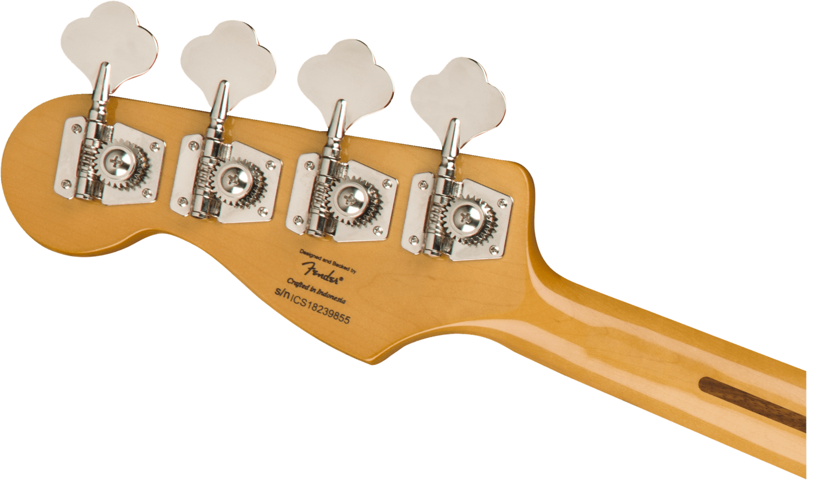 The Classic Vibe ‘70s Jazz Bass® is a nod to the 1970s evolution of the J Bass®, combining the luxurious playability that made it famous with the versatility and massive tone of its dual Fender-Designed alnico single-coil pickups. Player-friendly features include a slim, comfortable “C”-shaped neck profile with an easy-playing 9.5”-radius fingerboard and narrow-tall frets, as well as a vintage-style bridge with slotted barrel saddles for solid string stability. This throwback Squier model also features 1970s-inspired headstock markings, rich-looking nickel-plated hardware and a slick vintage-tint gloss neck finish for an old-school vibe.