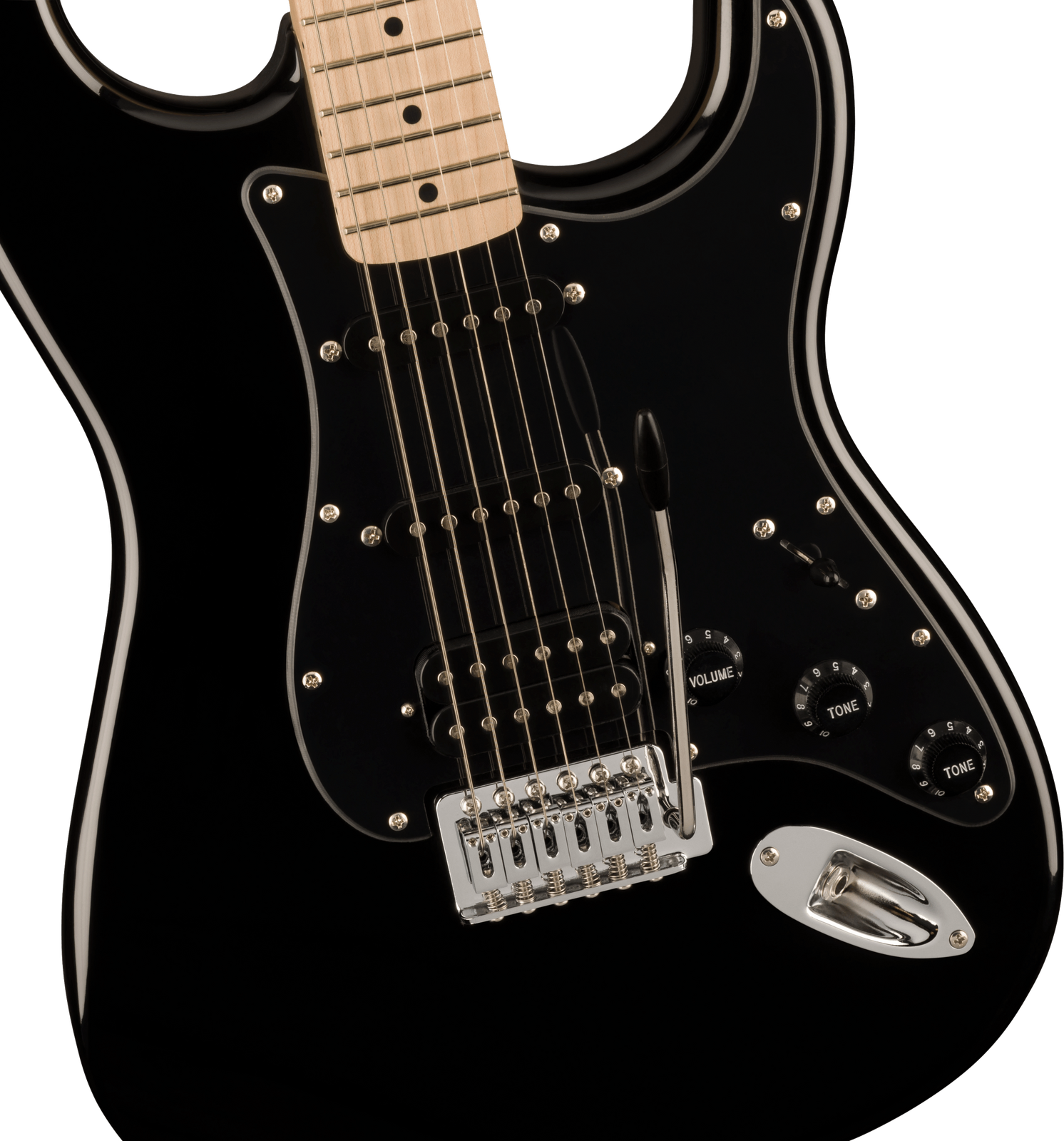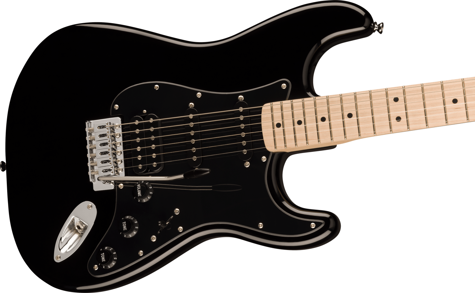 • Squier humbucking bridge pickup, single-coil neck and middle pickups (HSS)