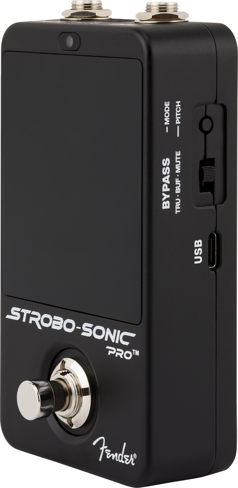 Strobo-Sonic Pro™ is an ultra precise strobe tuner anyone can use, featuring an astonishing ±0.01 cent tuning accuracy in an incredibly pedalboard-friendly package. Designed with on-stage tuning in mind, the Strobo-Sonic Pro features a large, high-visibility LED display, auto brightness dimming and two easily trackable tuning display modes to provide effortless tuning for any player. Strobe display mode delivers hyper-sensitive accuracy that even the most discerning guitar tech will appreciate, while needle display mode provides a familiar tuning experience for any situation. Conveniently accessible side switches offer deeper control of the reference pitch and three bypass modes including true bypass, buffered bypass and buffered always-on modes.