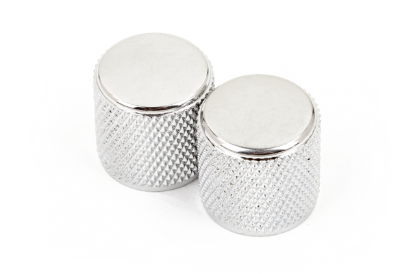 Knurled flat-top control knobs designed to fit 1/4" solid-shaft potentiometers on most U.S.- and Mexico-made Telecaster and Precision Bass models manufactured from 1951-present.