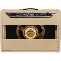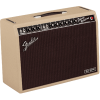 In a bold Fender first, the Tone Master Deluxe Reverb Blonde amplifier uses massive digital processing power to achieve a single remarkable sonic feat: faithfully modeling the circuitry and 22-watt power output of an original Deluxe tube amp. A high-performance 100-watt digital power amp is used to achieve the headroom and dynamic range of a real vintage Deluxe tube amp. The resonant pine cabinet is paired with a single Celestion® NEO Creamback speaker for a more distinctive rock 'n' roll flavor. The result is tubeless Deluxe Reverb tone, volume and dynamics virtually indistinguishable from the all-tube original. The amp model has been modified to remove the virtual bright cap on the Vibrato channel, which gives modern players greater tonal flexibility when using distortion and overdrive pedals. Additionally, the reverb control now provides easier fine tuning at lower settings. Perhaps most notably, even with all these features and more, the Tone Master Deluxe Reverb is in fact about only half the weight of an all-tube Deluxe.