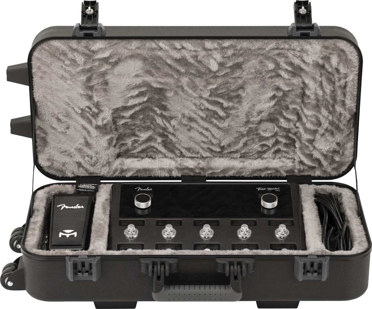 Fender’s Tone Master Pro Case is a stylish and affordable way to keep your Tone Master Pro safe while traveling. Its rock-solid outer layer is constructed of a tough ABS outer shell that protects against impacts on the road and a telescoping handle with rugged roller wheels allow for easy transport. The interior features gray high-quality polyester plush with two dividers to accommodate an expression pedal and other gear.