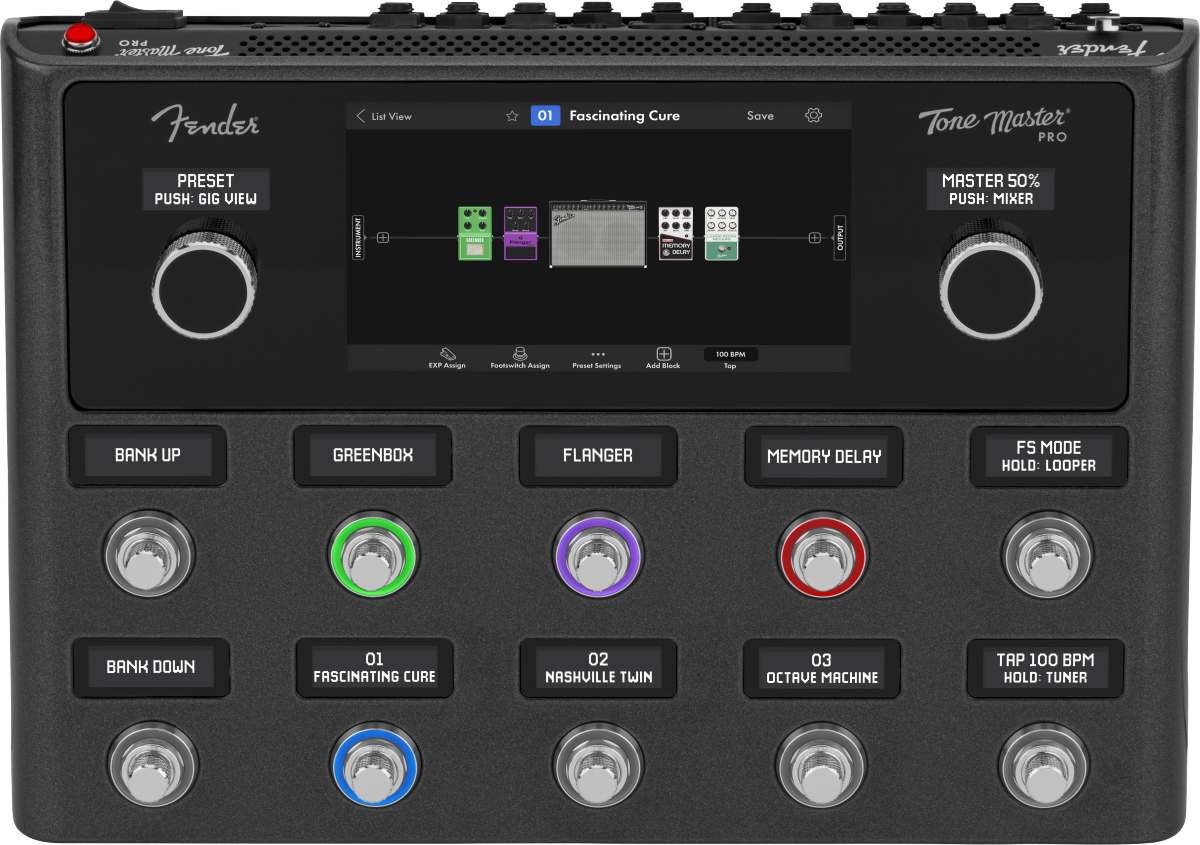 Tone Master Pro features over 100 of the world's most popular amps and effects, including all of the classic Tone Master Fender models, the first officially licensed EVH 5150 III Stealth model, and other can't live without classics that have all been perfectly replicated using our proprietary Tone Master Modeling process. Tone Master Pro's lightweight, rugged, stage-friendly form factor is as beautiful as it is functional. With a full-color touchscreen, stunning graphics, and intuitive user interface, dialing in the perfect tone has never been easier or more inspired.
