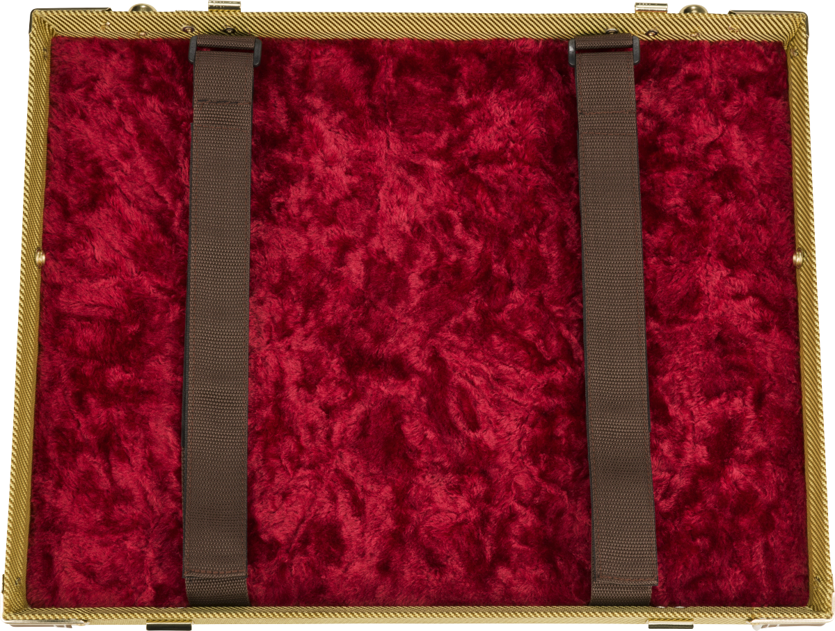 The unmistakable look of a Fender tweed case now available for your pedalboard! Available in three different sizes, these cases fit nearly every pedalboard currently available on the market. Constructed from 3-ply wood, lockable butterfly latches, and red poodle plush interior with additional padding for extra stomp box security. Also features an optional removable lid.