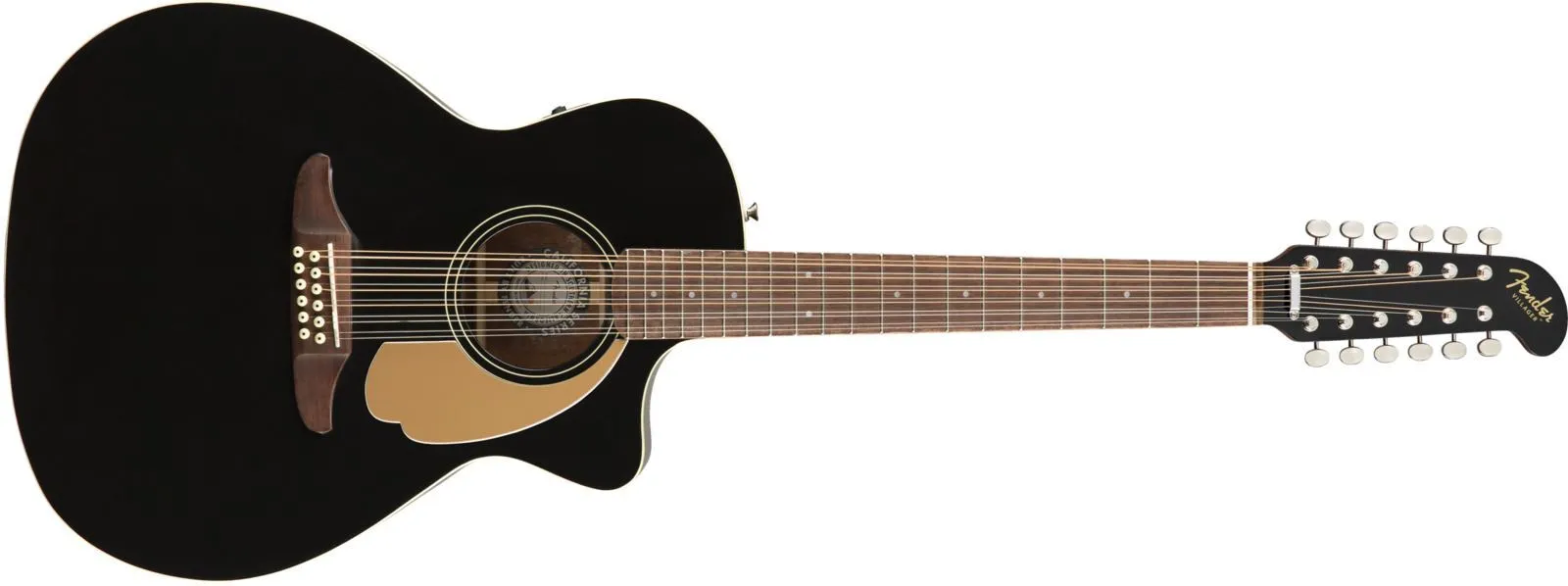 With its authentic "hockey stick" headstock from the 1960s, the Villager™ 12-String joins the ranks of Fender's California Player series acoustics. Originally introduced in 1965, today's Villager 12-String has been updated for the modern player's needs with a gloss black finish, comfortable cutaway Newporter shape and high-quality Fishman® electronics. Acoustically, this solid spruce-topped guitar offers all the chiming resonance you expect from a great 12-string.