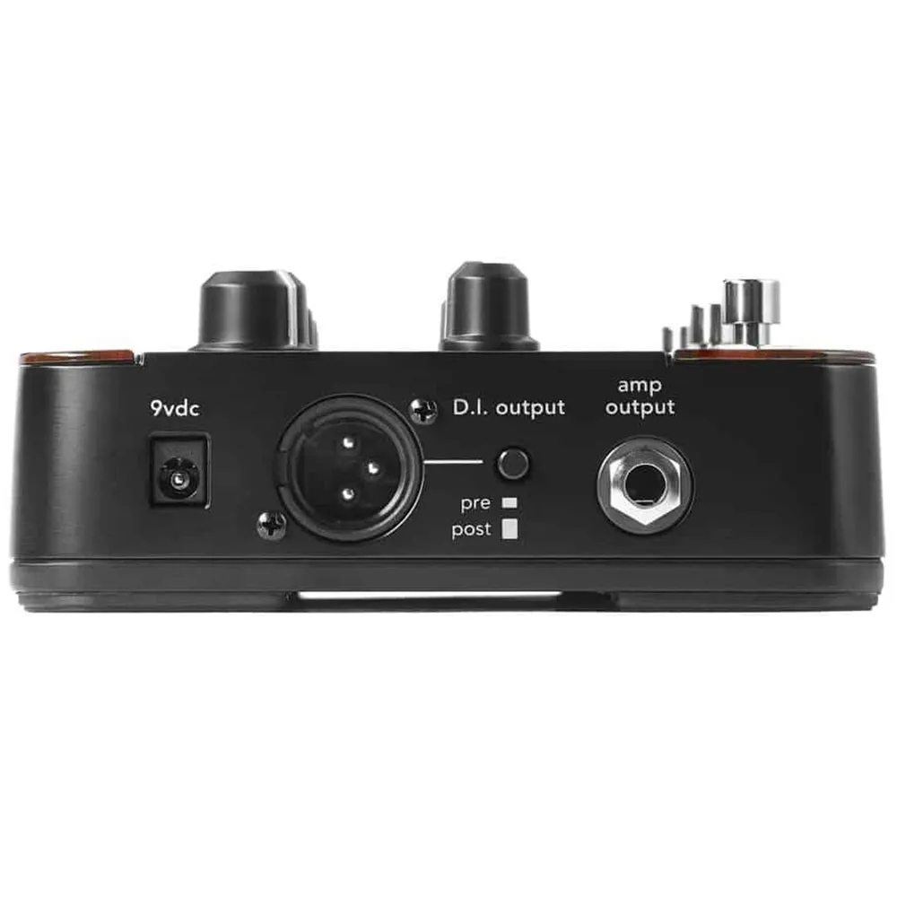 • 1/4” mono input, 1/4” amplifier output, Balanced XLR DI Output with pre/post routing