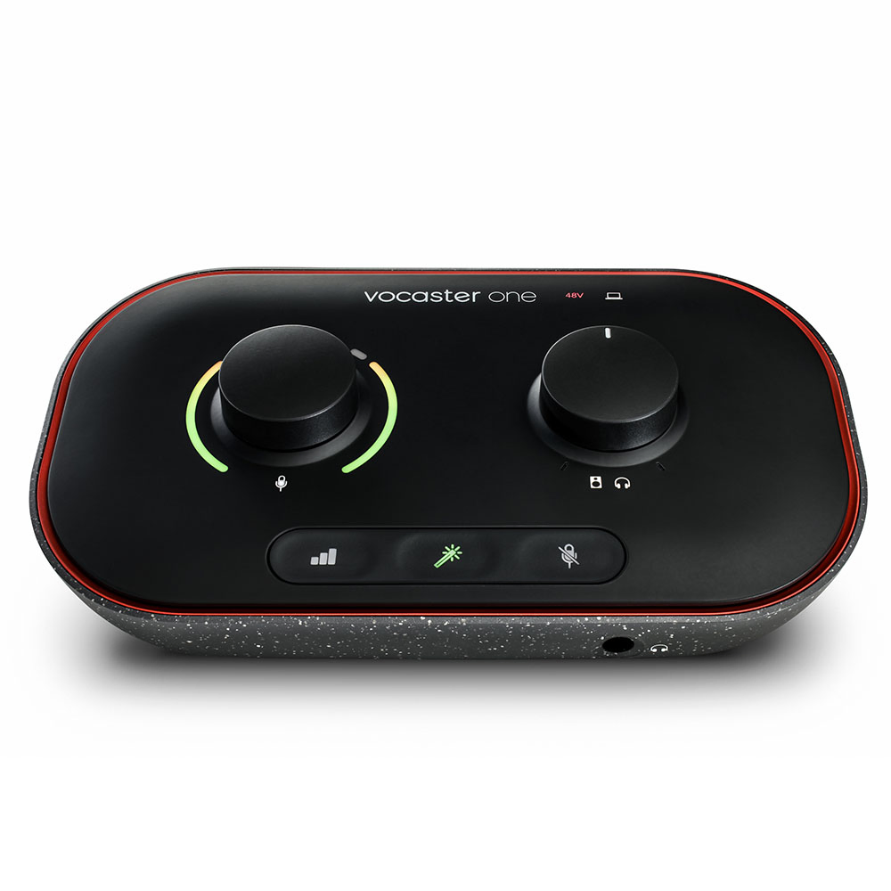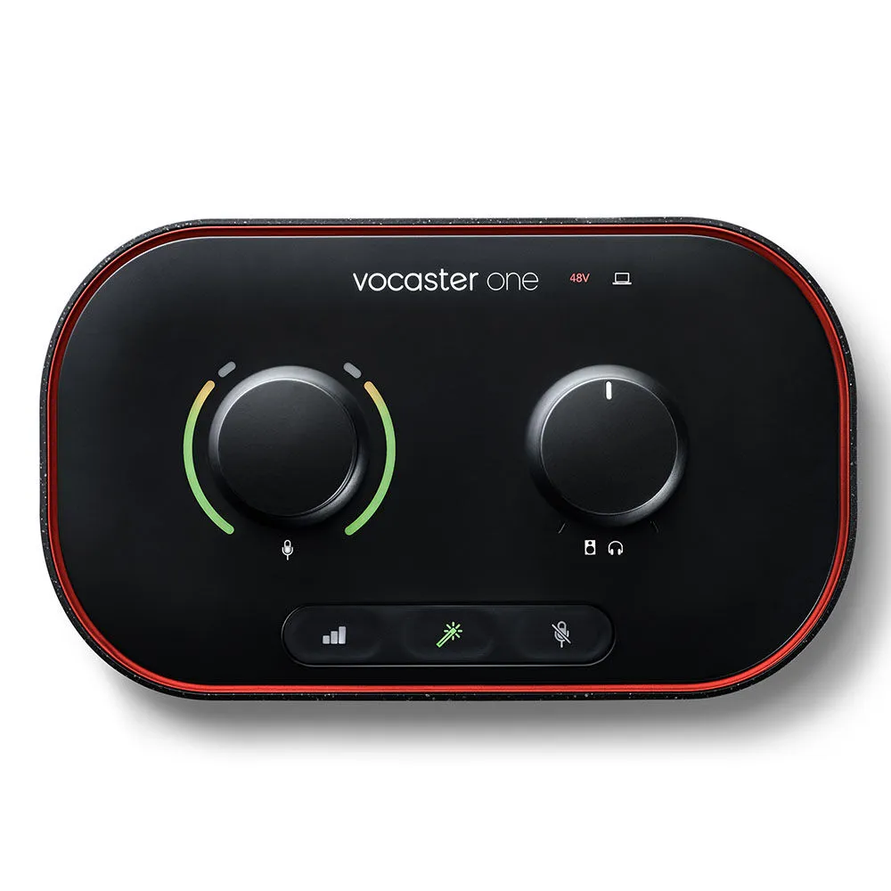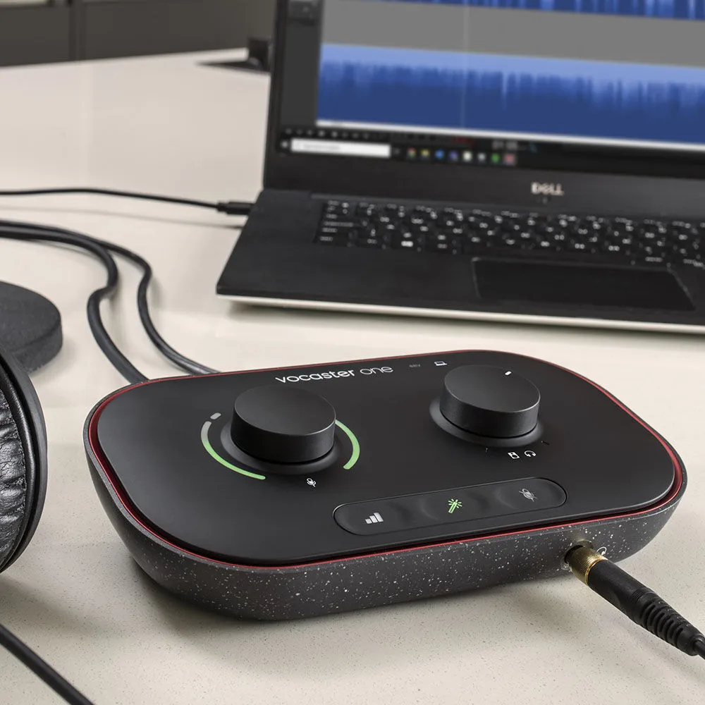 Focusrite Vocaster One Podcast Interface delivers incredible sound, with enough gain for any XLR mic. Set levels, enhance your sound with one click, and stand out with Vocaster One in seconds.