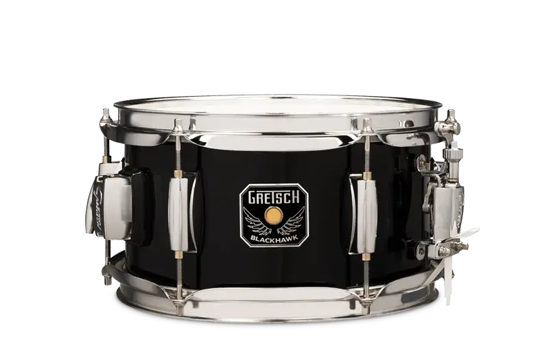 The BLACKHAWK® Mighty-Mini 6 lug snare drum features a 7-ply Poplar shell, 1.6mm steel triple flange hoops, and 30 degree bearing edges.