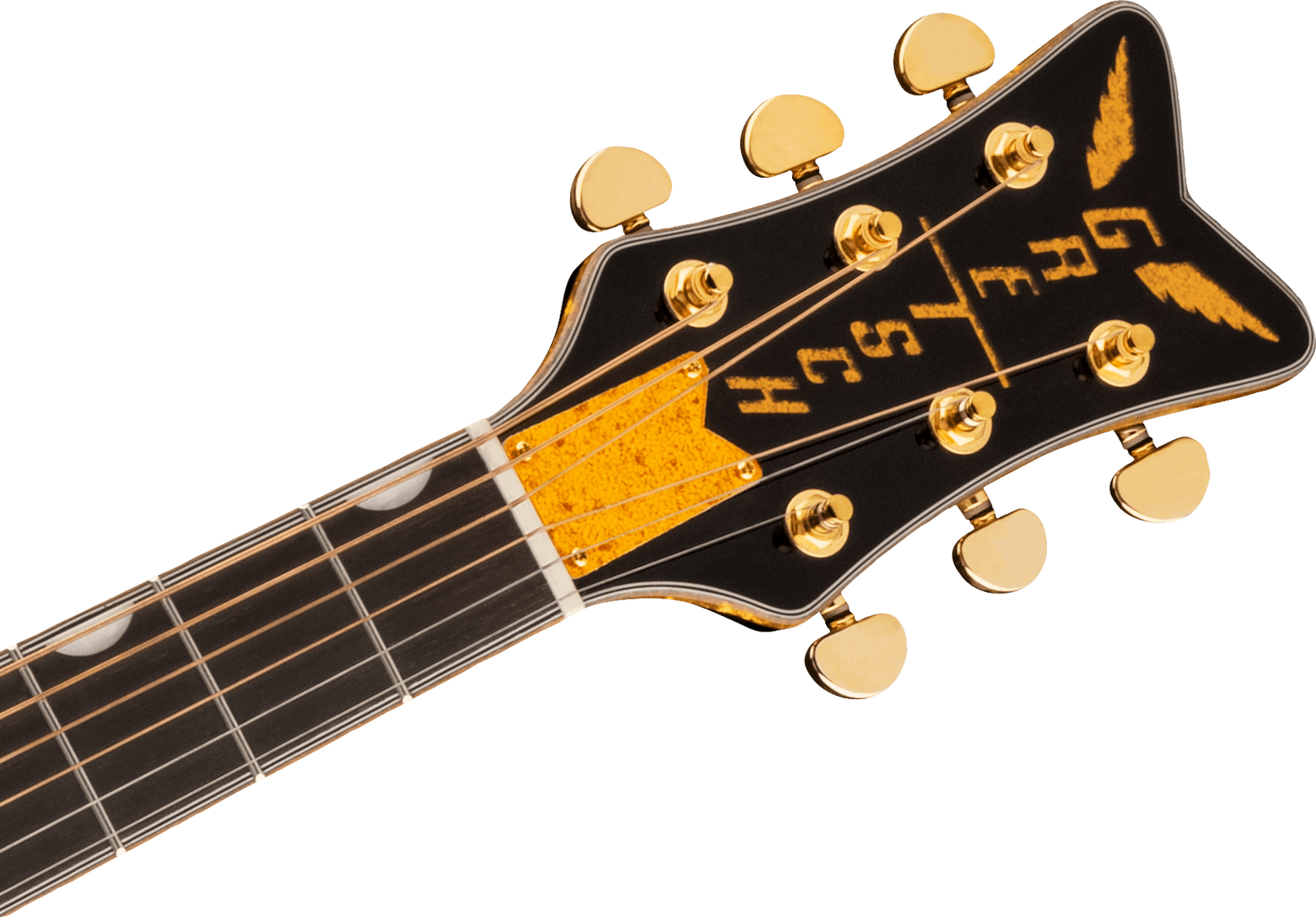 • Gold sparkle vertical wing Gretsch headstock logo