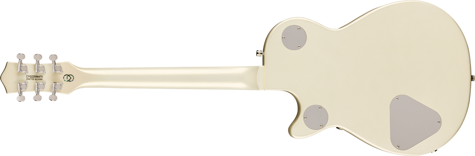 The G5230T-140 features a striking 2-Tone Stone Platinum over Pearl Platinum finish with matching pickguard and pickup bezels, chrome hardware, and a matching headstock with commemorative 140th Anniversary plaque.