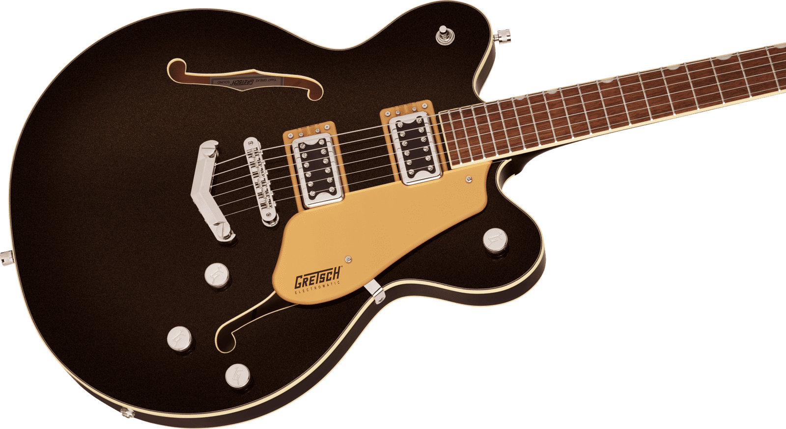 The G5622’s other features include an anchored Adjusto-Matic™ bridge, Graph Tech® NuBone® nut and G-arrow knobs.