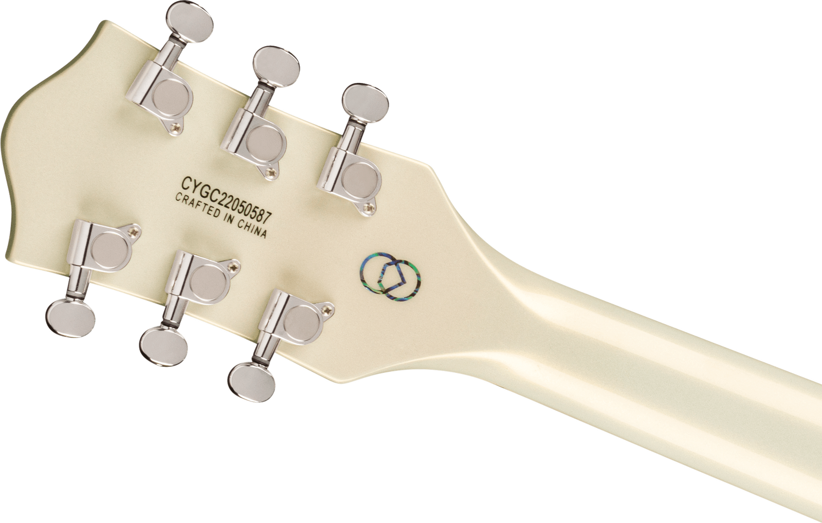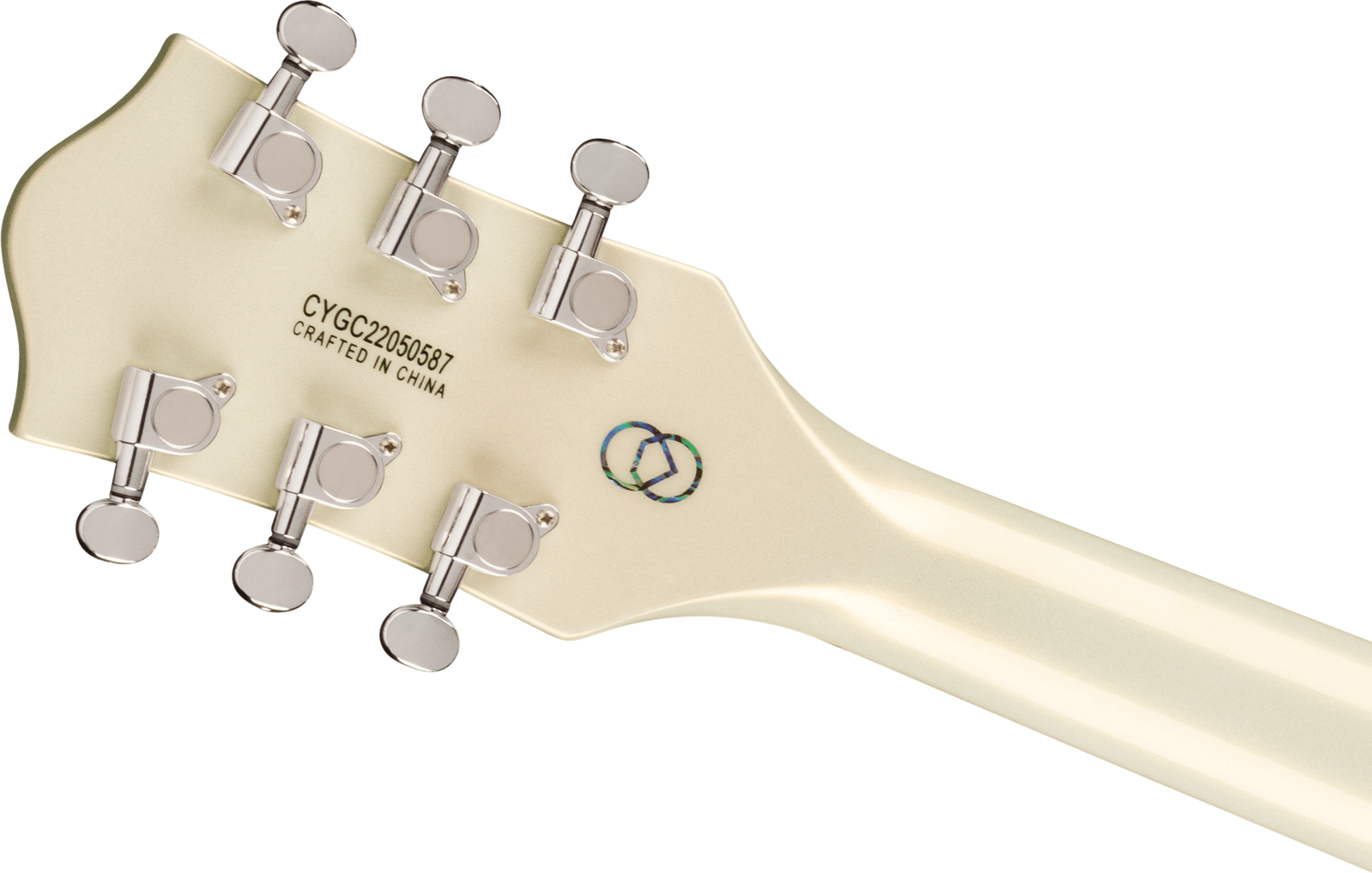 The G5622T-140 features a striking 2-Tone Stone Platinum over Pearl Platinum finish with matching pickguard and pickup bezels, chrome hardware, and a matching headstock with commemorative 140th Anniversary head plaque.