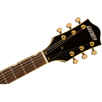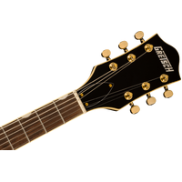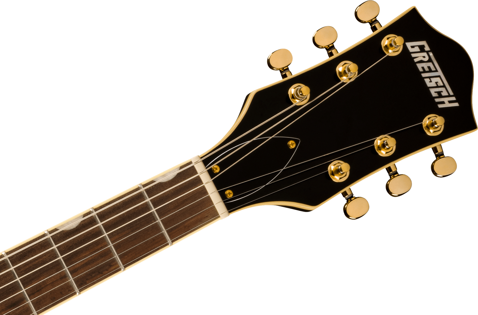 The G5655TG Electromatic® Center Block Jr. Single-Cut with Bigsby® and Gold Hardware features a smaller-sized body with a chambered spruce center block for dynamic resonance, high gain power and lightweight comfort.