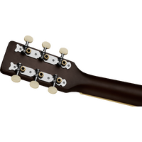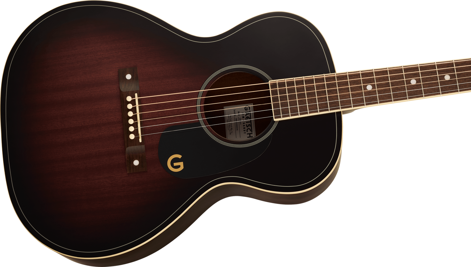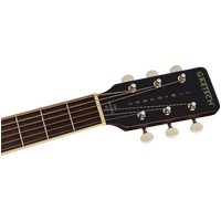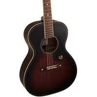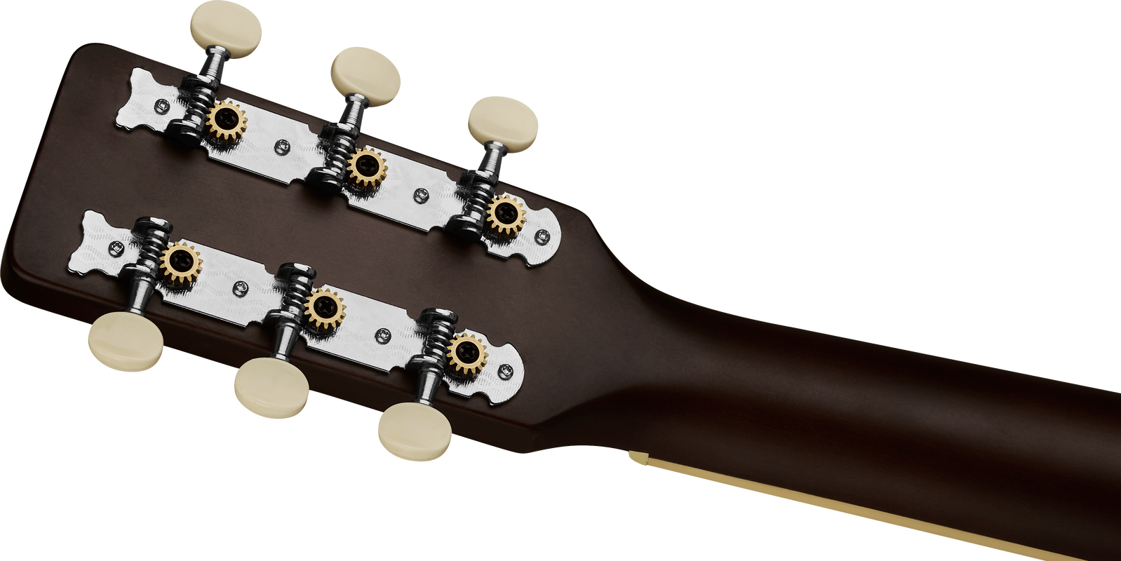 The X-braced body is crafted with select lightweight laminate tonewoods for an optimal balance of woody vintage tone and reliable durability, while the “C”-shape neck presents an inviting feel for hours of old-timey inspiration. Period-correct details such as a vintage-style pinned bridge, “G”-graphic pickguard, painted pinstripe purfling, 3-on-a-plate open-gear tuning machines and oversized dot fingerboard inlays combine for a nostalgic personality destined for any barnburner or jamboree.